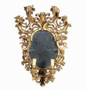 Coppia di specchiere in legno intagliato, traforato e dorato. Toscana XVII-XVIII [..]