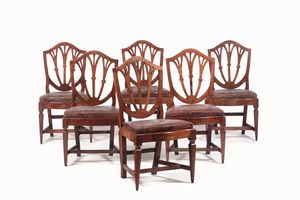 Set composto da sei sedie e due poltrone in legno laccato. Toscana XVIII secolo