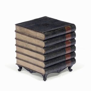 Scatola a guisa di pila di libri in legno dipinto. XIX secolo