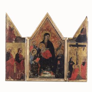 Scuola del XIX secolo Madonna in trono con Bambino, l'Annunciazione e la Crocifissione [..]