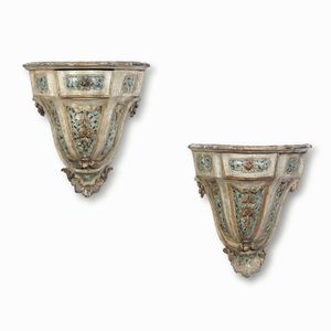 Coppia di mensole Luigi XVI in legno intagliato e laccato. Venezia XVIII secolo