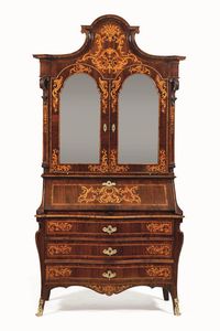 Bureau Luigi XV lastronato in palissandro con quadrifogli e filettature in bois [..]