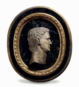 Profilo di imperatore. Marmo bianco e portoro. Arte italiana del XVI-XVII secolo