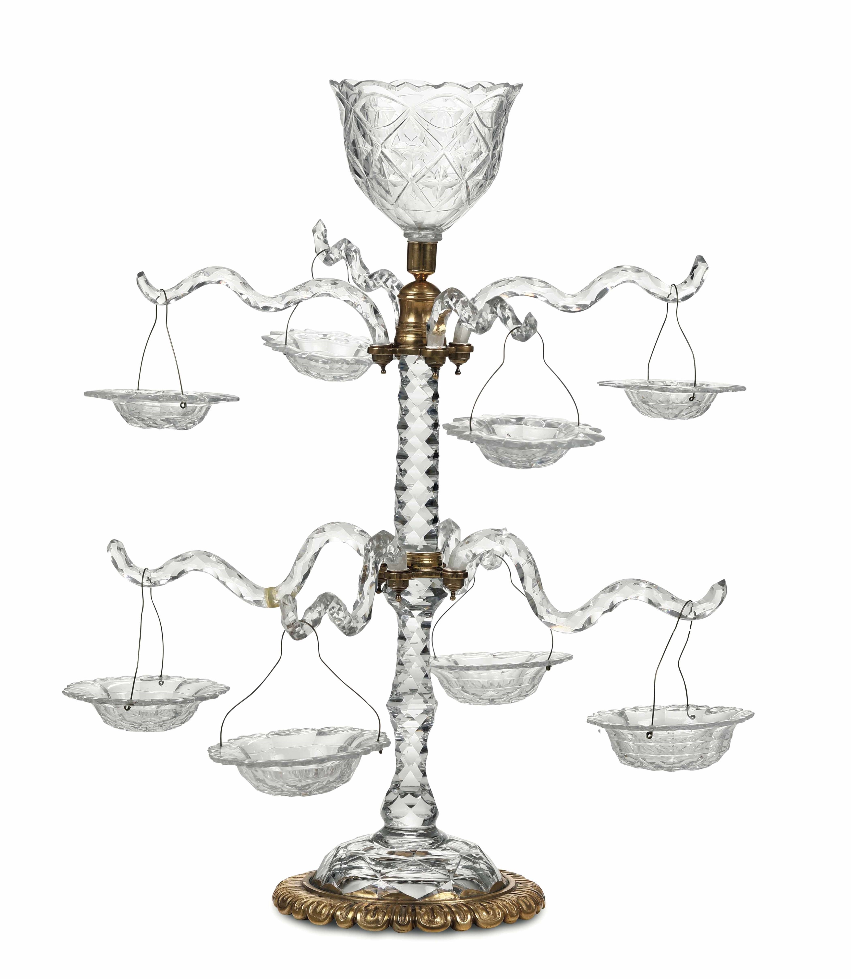 Epergne in cristallo e bronzo dorato. Inghilterra, fine XVIII secolo