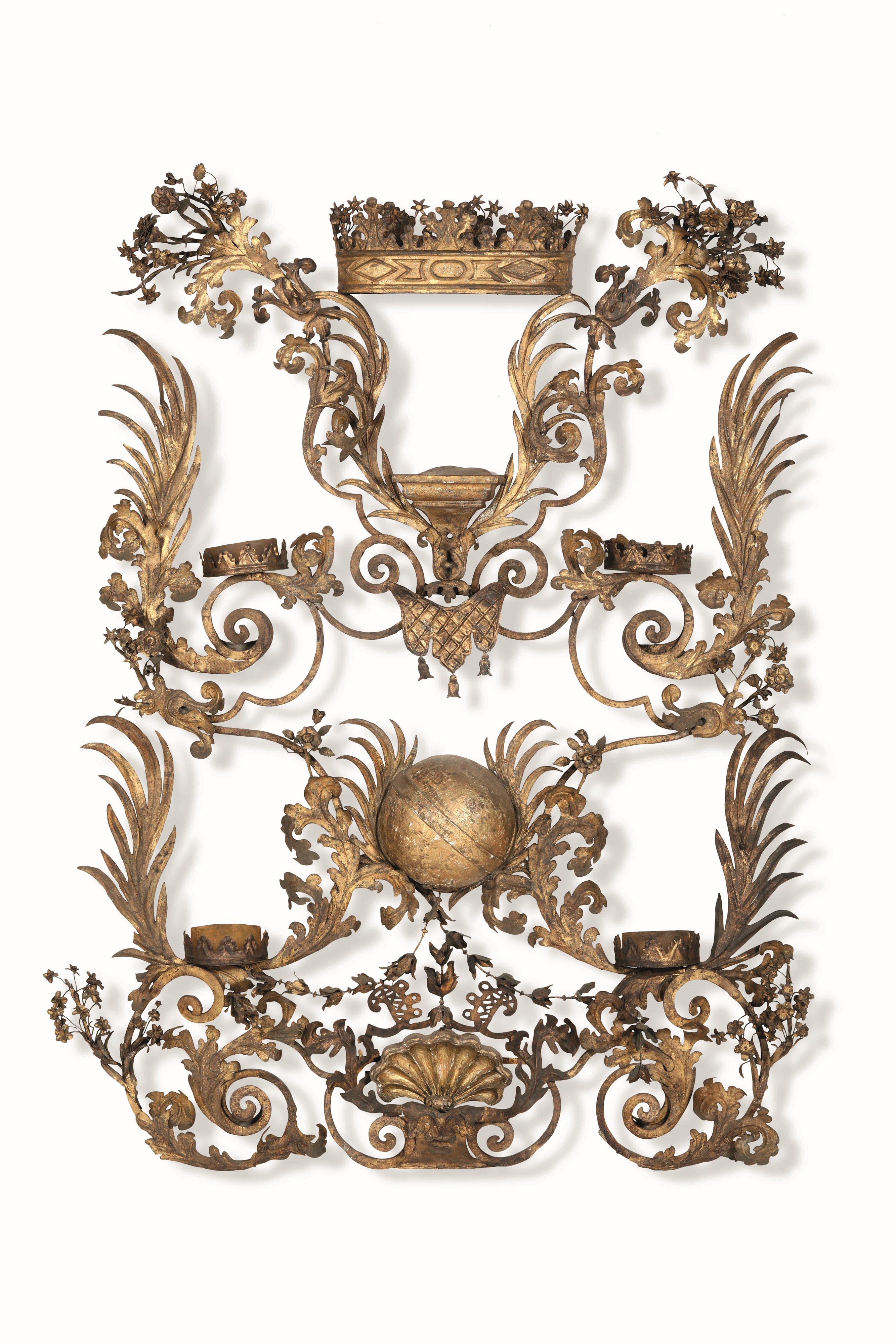 Grande elemento da parete in ferro battuto dorato. XVIII secolo