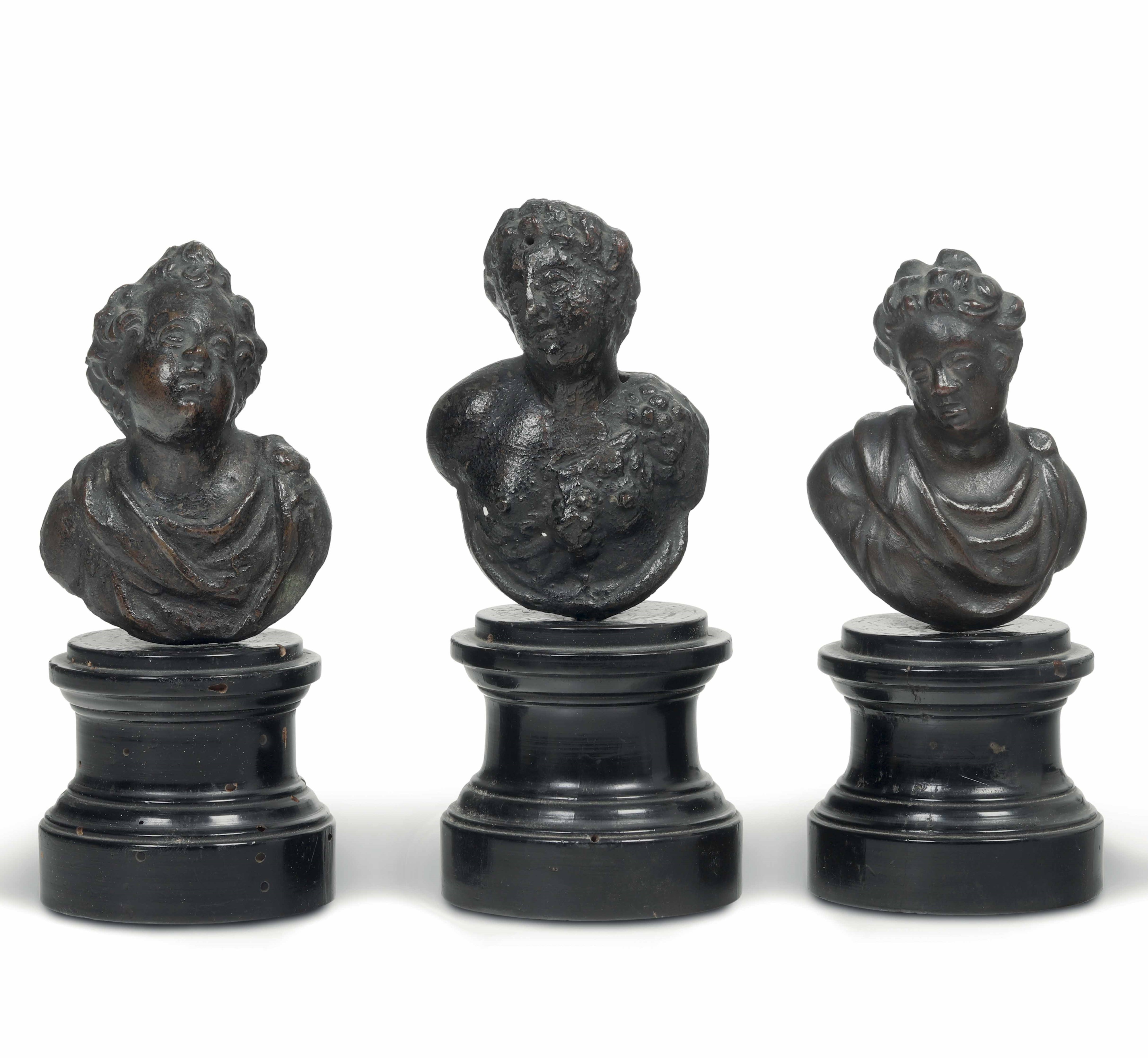 Gruppo di tre busti di fanciulli in bronzo fuso e cesellato. Fonditore italiano [..]
