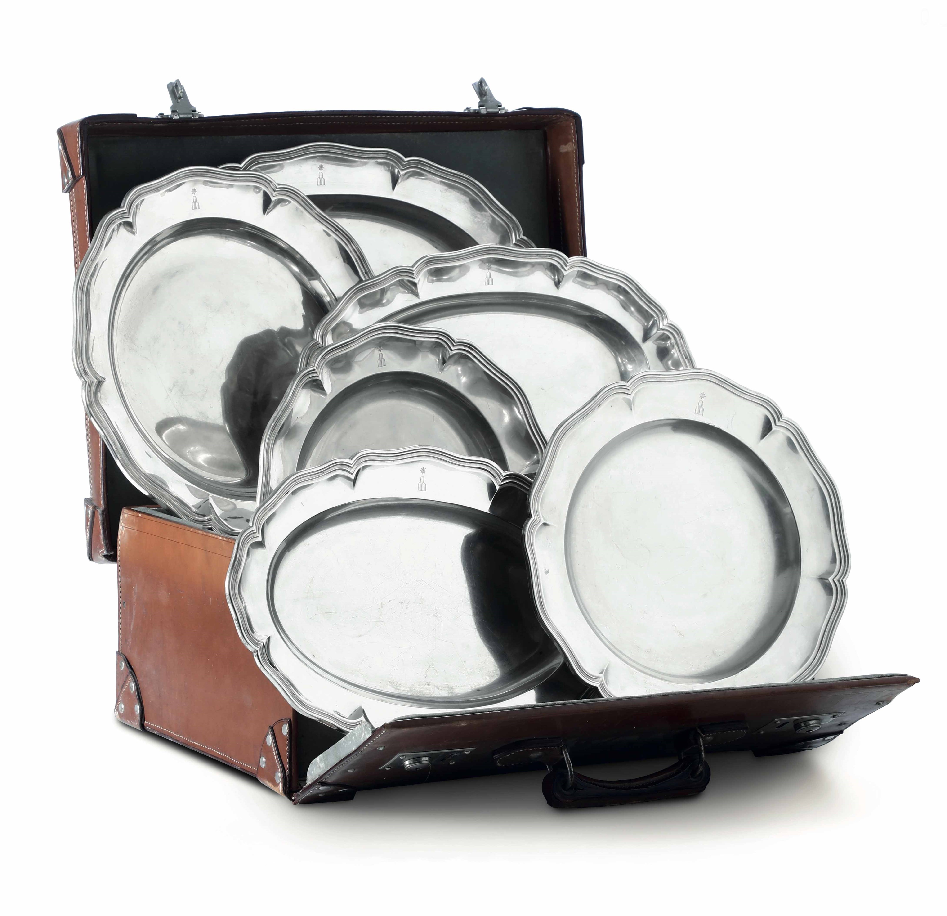 Insieme di 6 vassoi in argento fuso e cesellato. Argenteria milanese del XX secolo. [..]