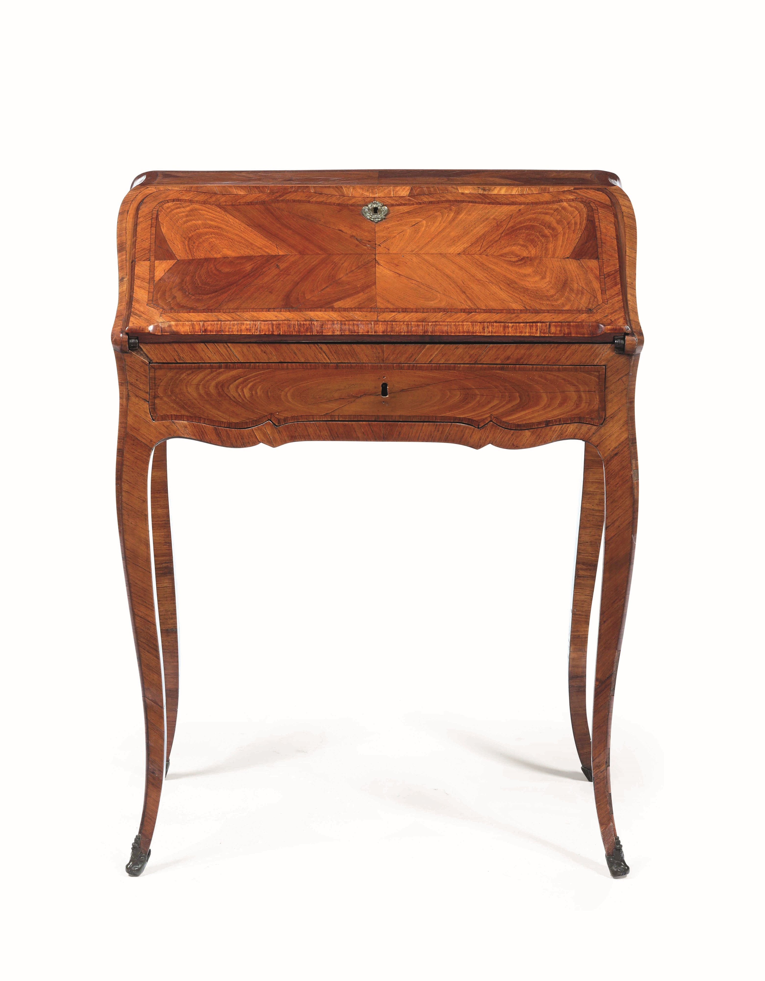 Piccolo bureau Luigi XV lastronato in bois de rose. Francia o Piemonte, XVIII se [..]