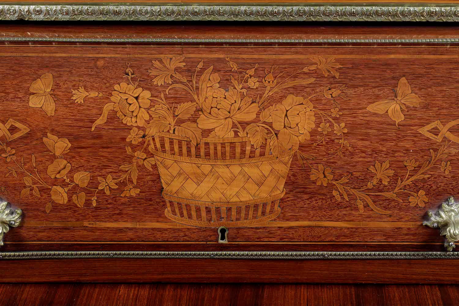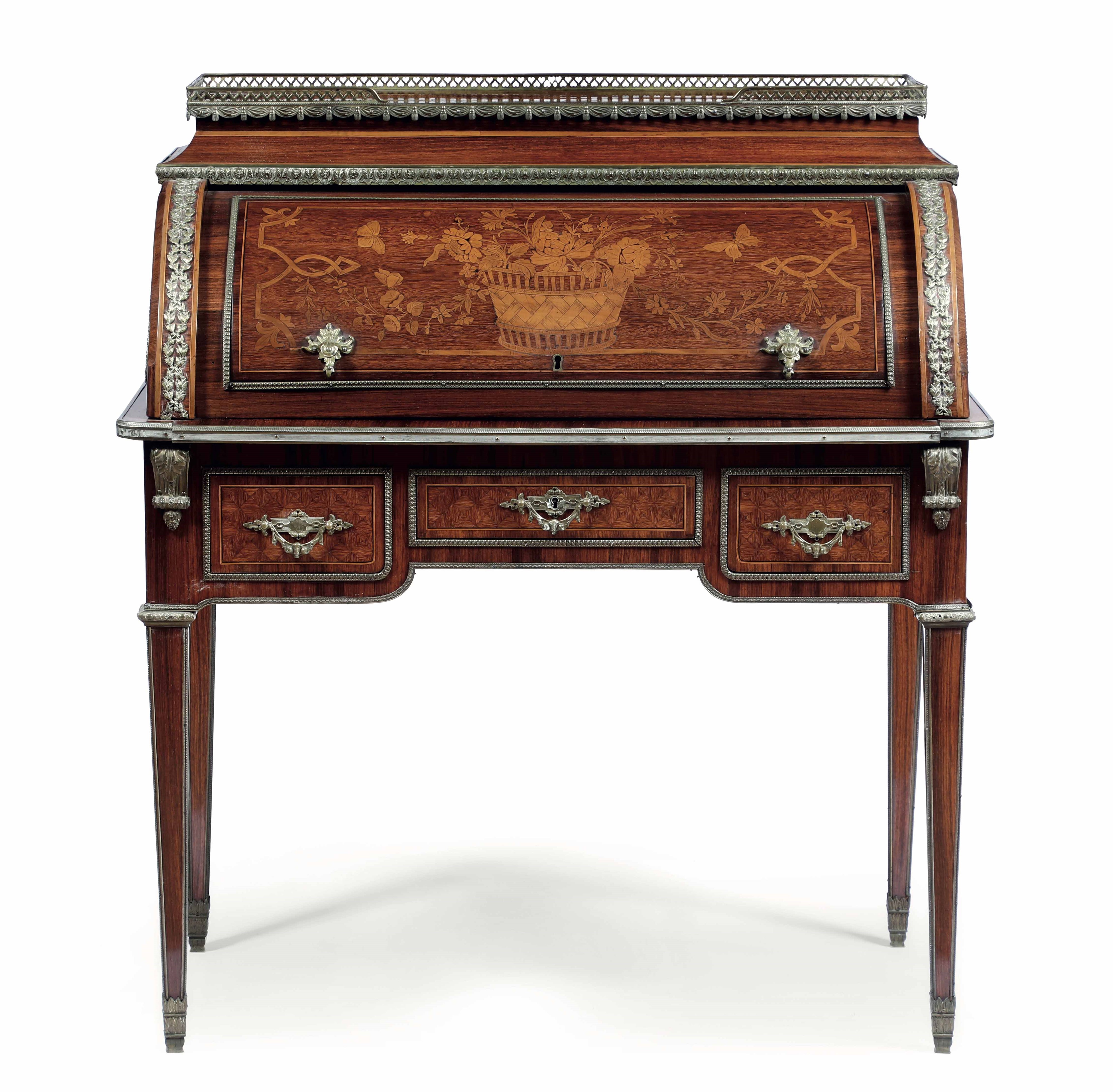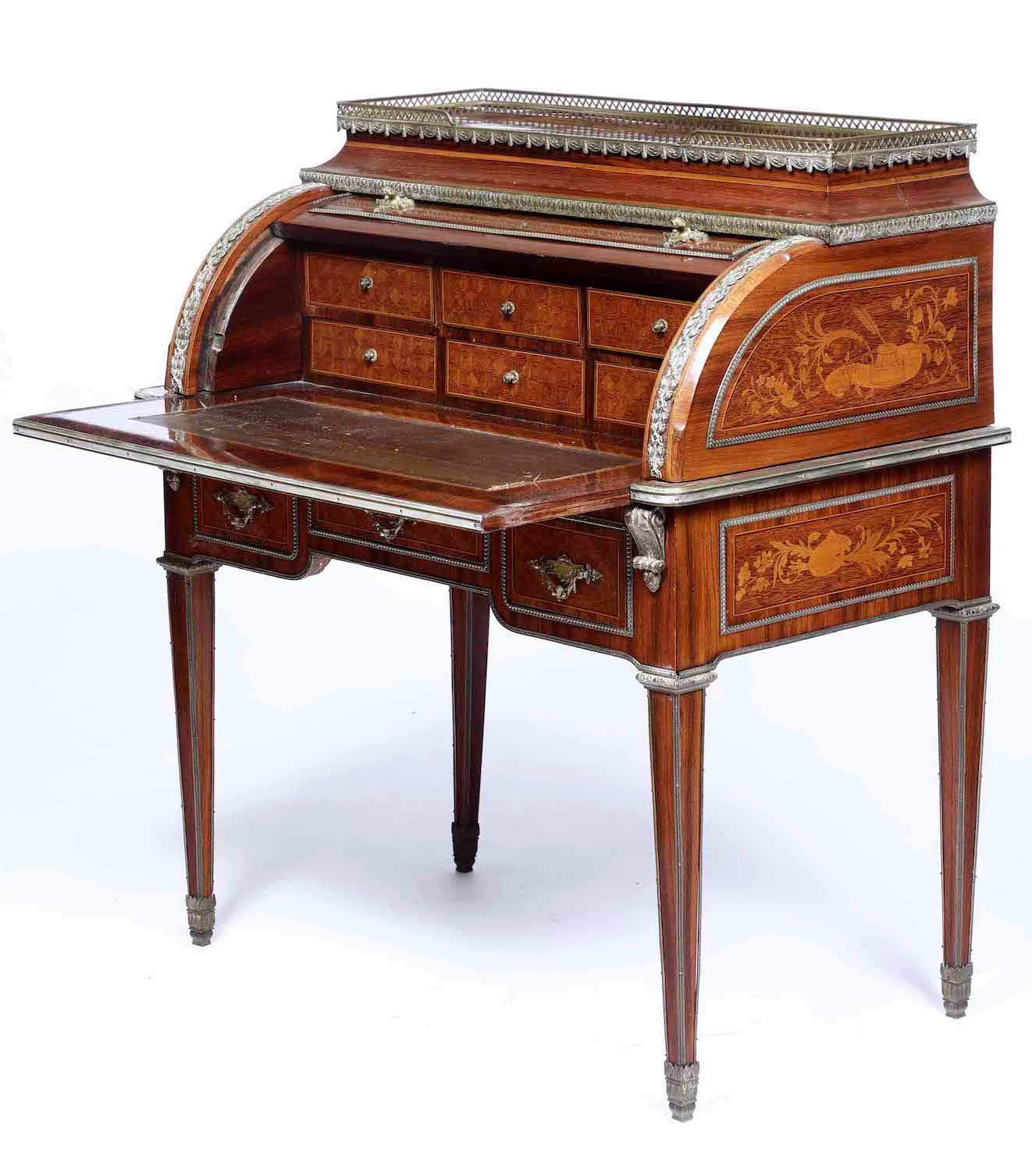 Scrittoio a rullo lastronato, filettato e intarsiato. Francia, XIX secolo