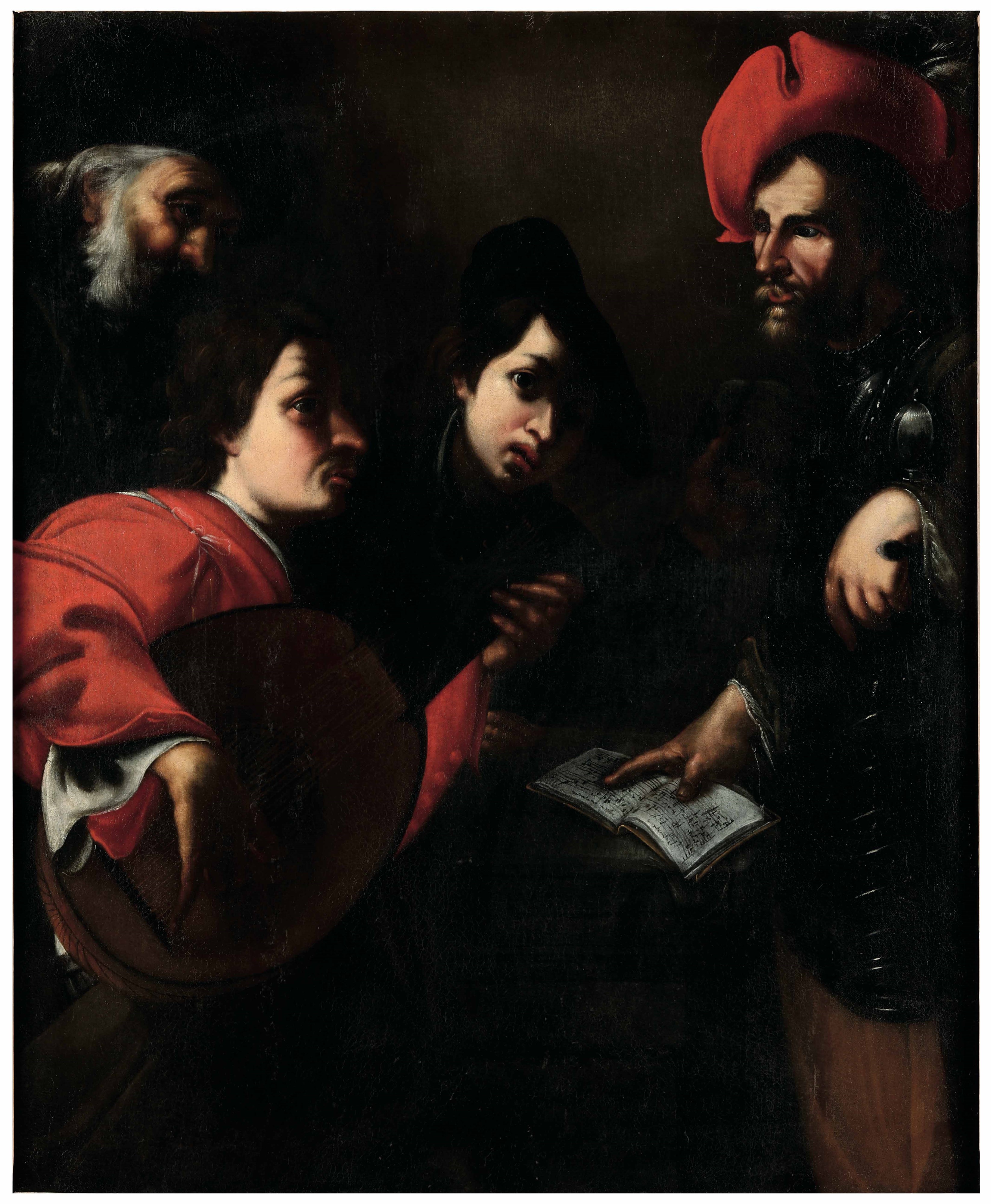 Scuola caravaggesca del XVII secolo Scena di interno con musici