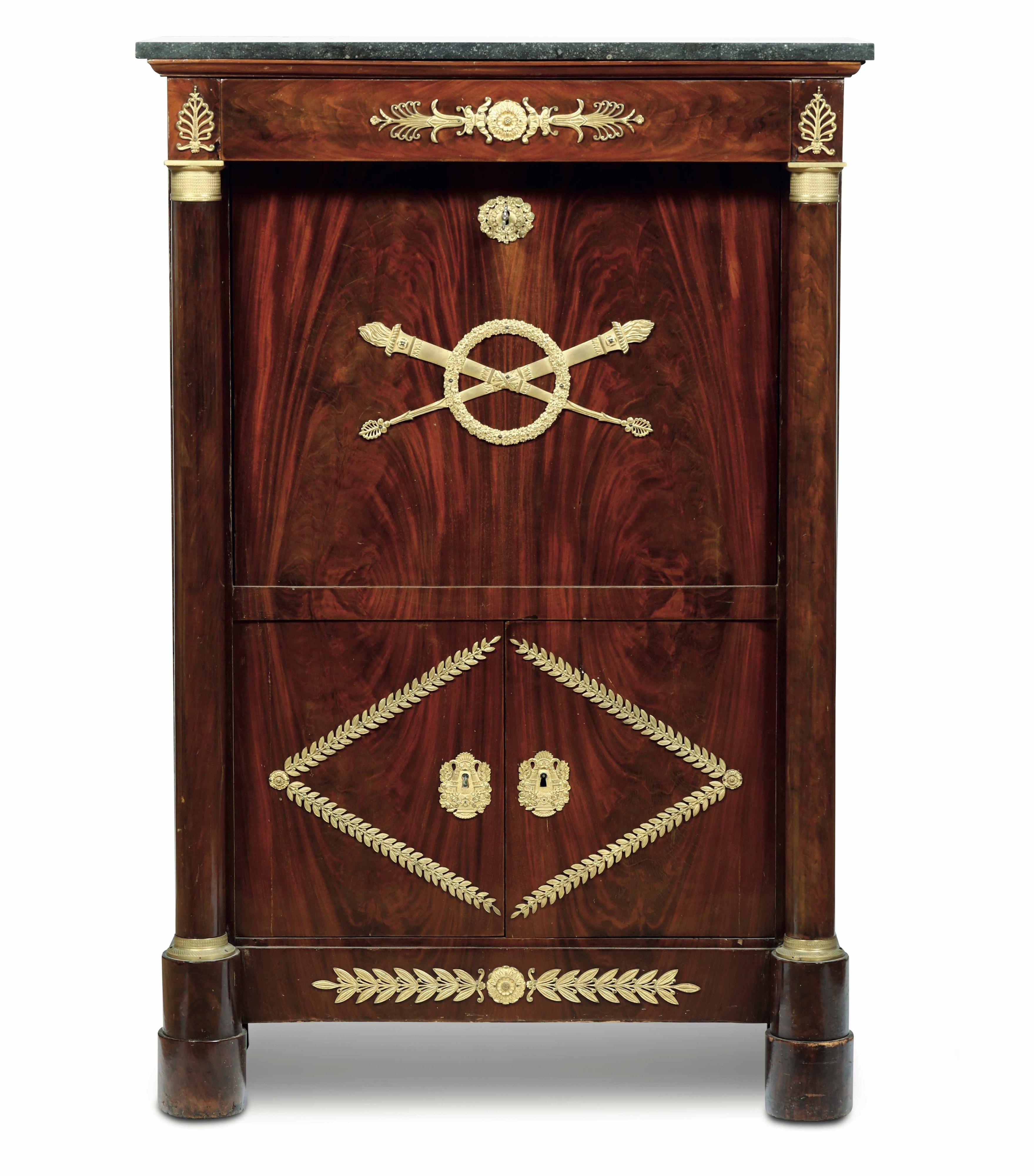 Secretaire lastronato in mogano. XIX secolo