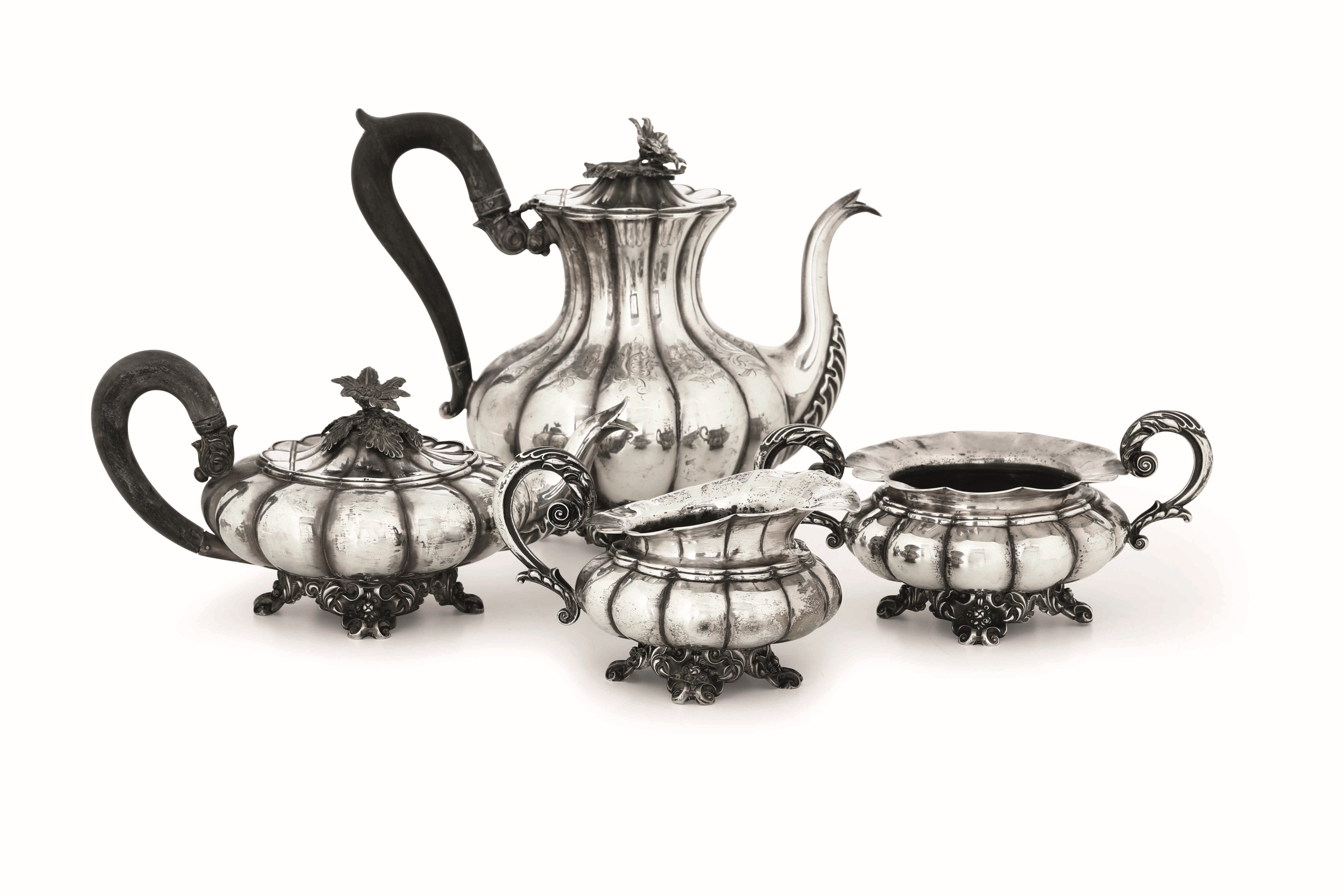 Servizio da tè e caffè in argento fuso, sbalzato e cesellato. Paesi Bassi, XX se [..]