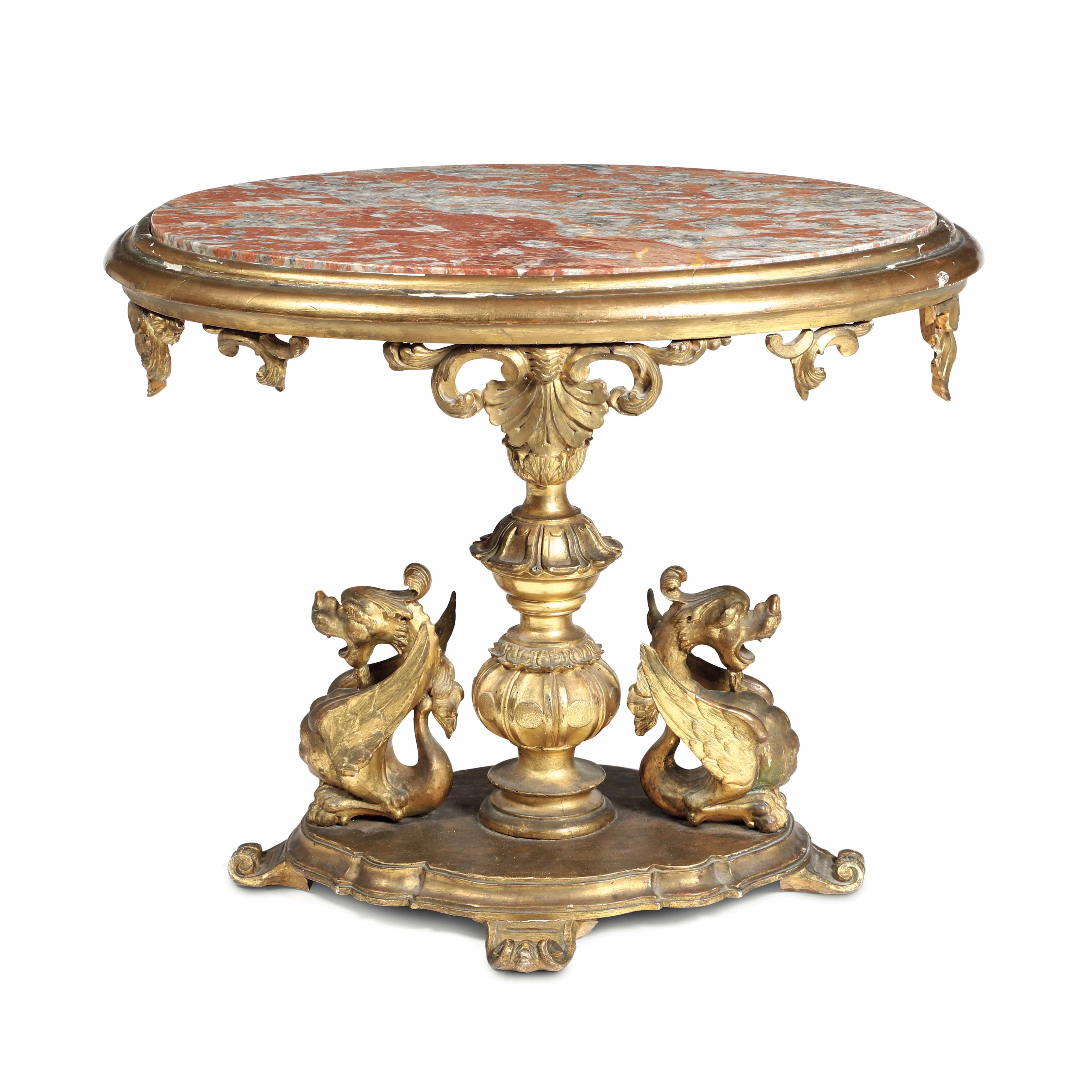 Tavolino da centro in legno intagliato e dorato. XIX secolo