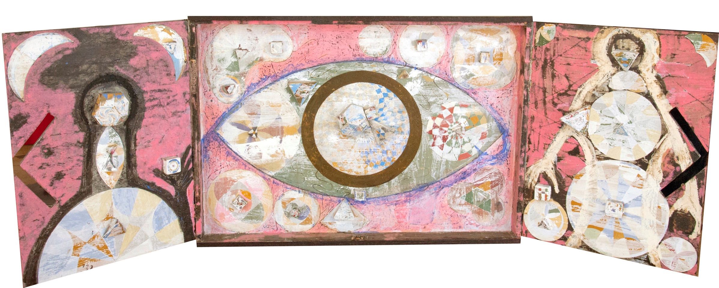 Assemblaggio e tecnica mista su tavola, cm. 92x260x17