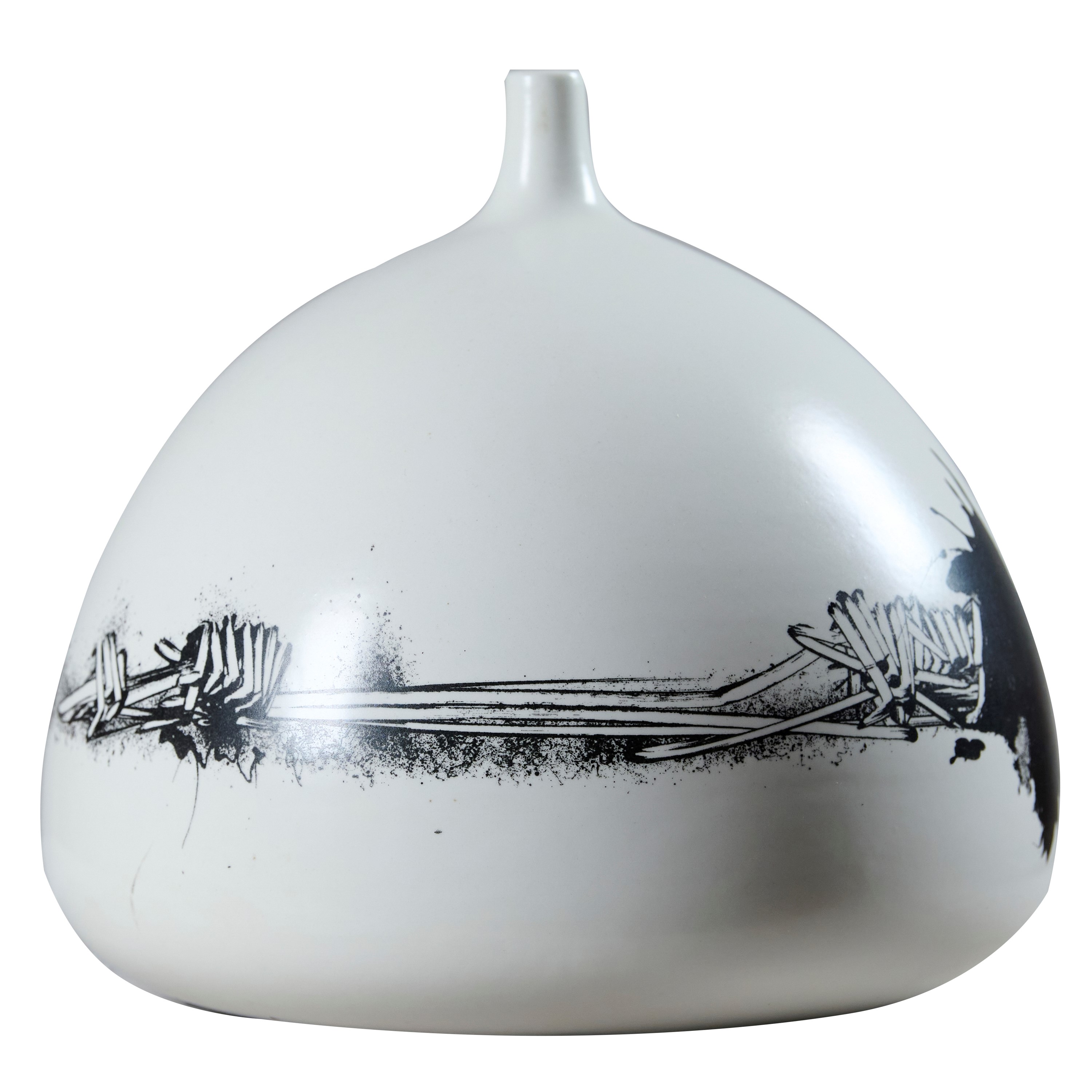 Scultura in ceramica dipinta a smalto, h. cm. 26, diam. cm. 26