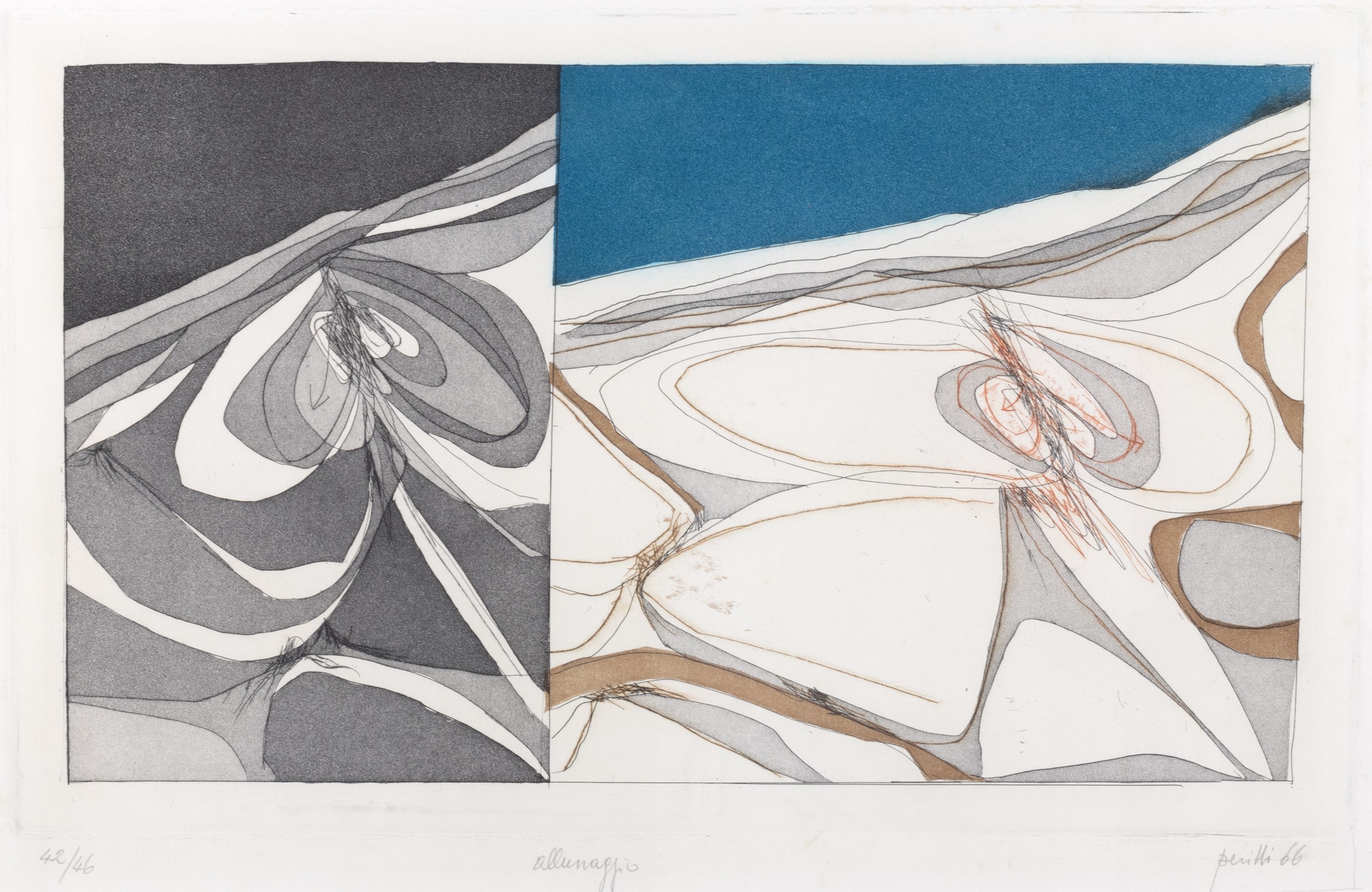 acquaforte acquatinta e puntasecca, es. 42/46, cm 32 x 48 (cm 50 x 65 misure del foglio)