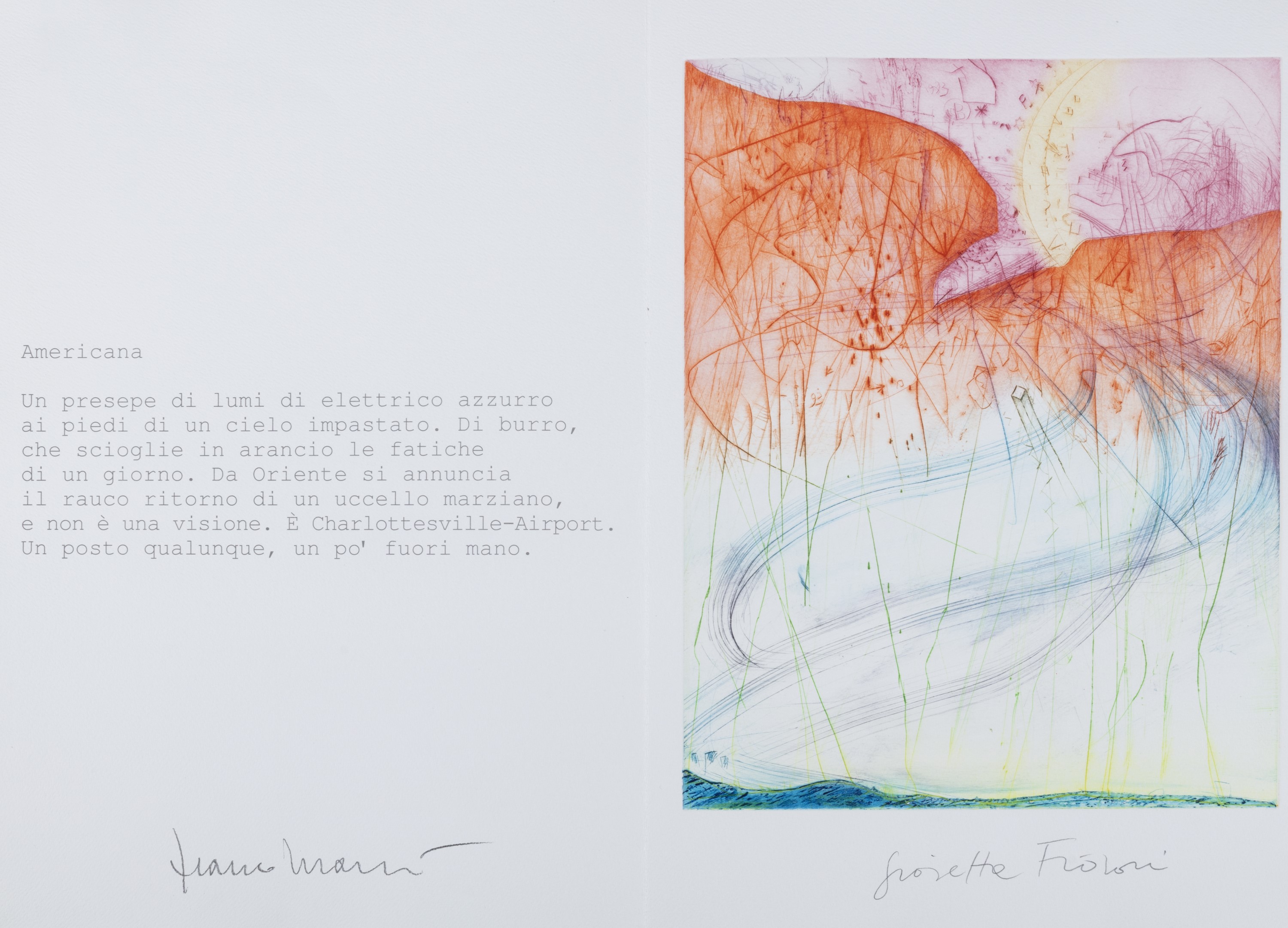 Sulla sinistra del foglio una poesia di Franco Marcoaldi con firma autografa