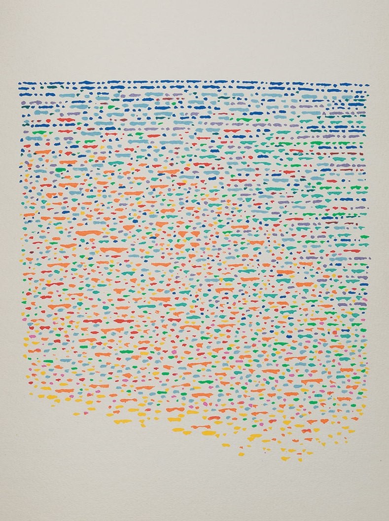 Volume con poesie di Cesare Vivaldi contenente 3 serigrafie di Piero Dorazio, di cui 2 legate nel testo e una in copertina, es. 23/500