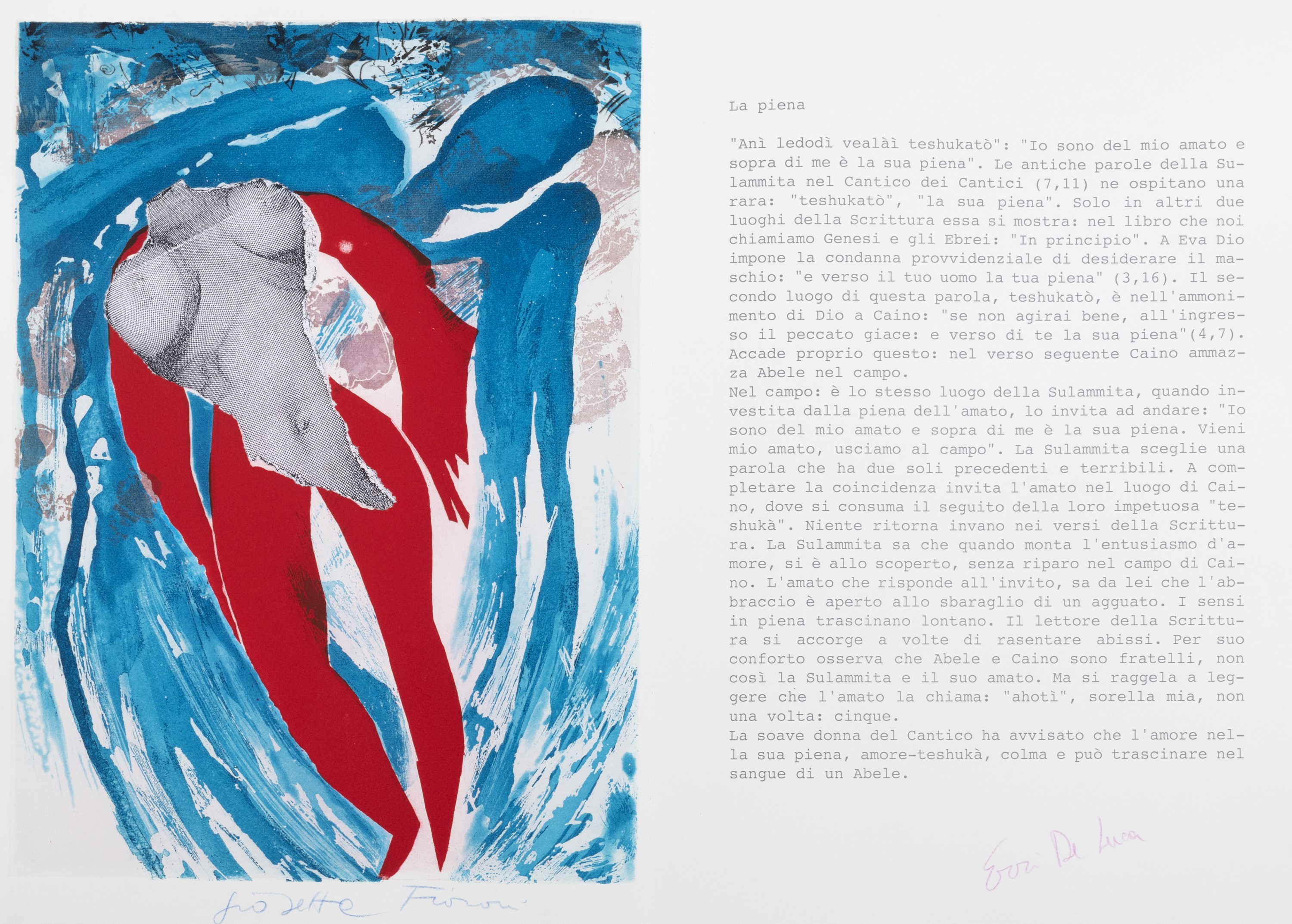 Sulla destra del foglio una poesia di Erri de Luca con firma autografa