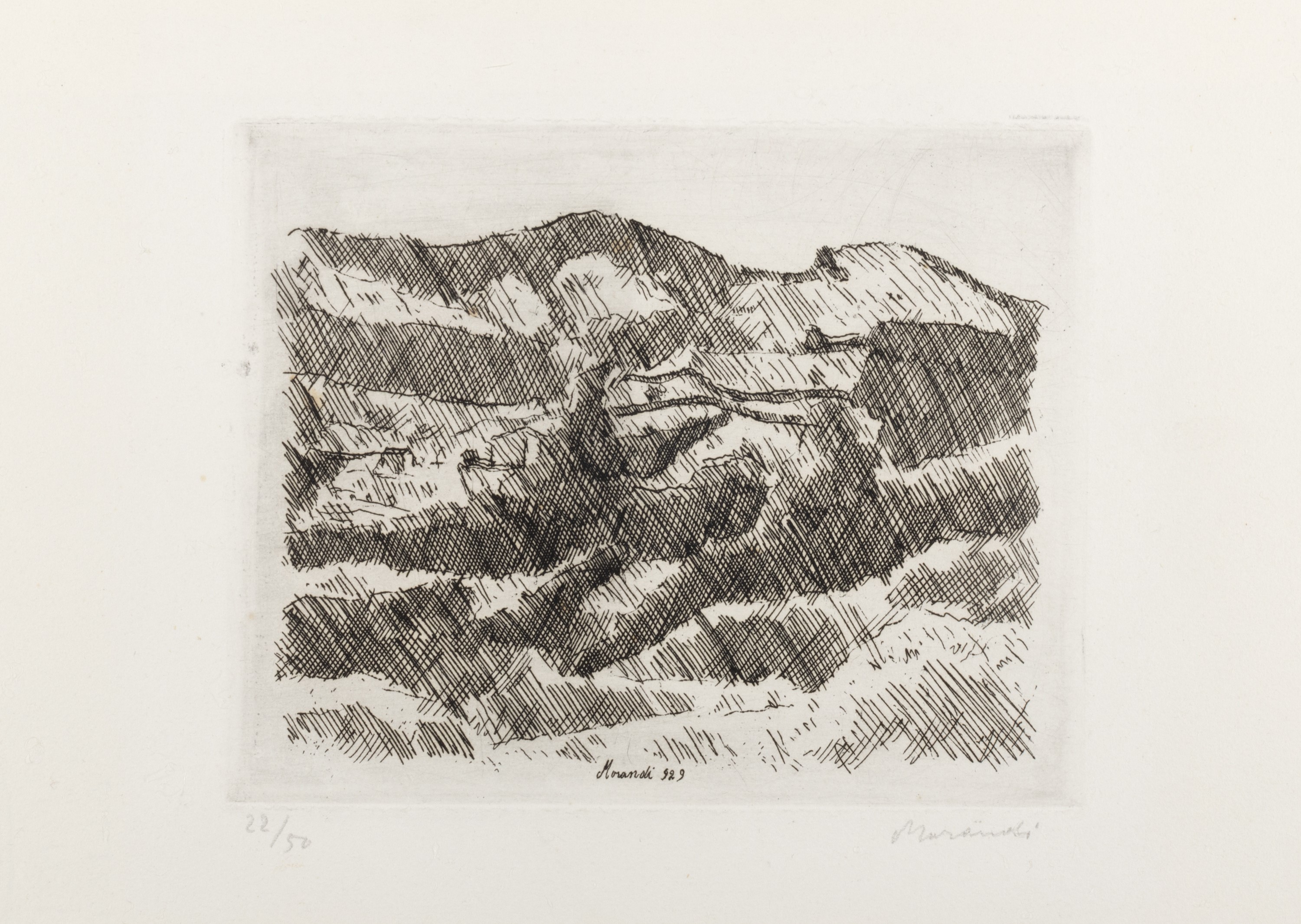 Giorgio Morandi : Monti di Grizzana, I stato  - Asta Grafica internazionale e multipli d'autore - Associazione Nazionale - Case d'Asta italiane
