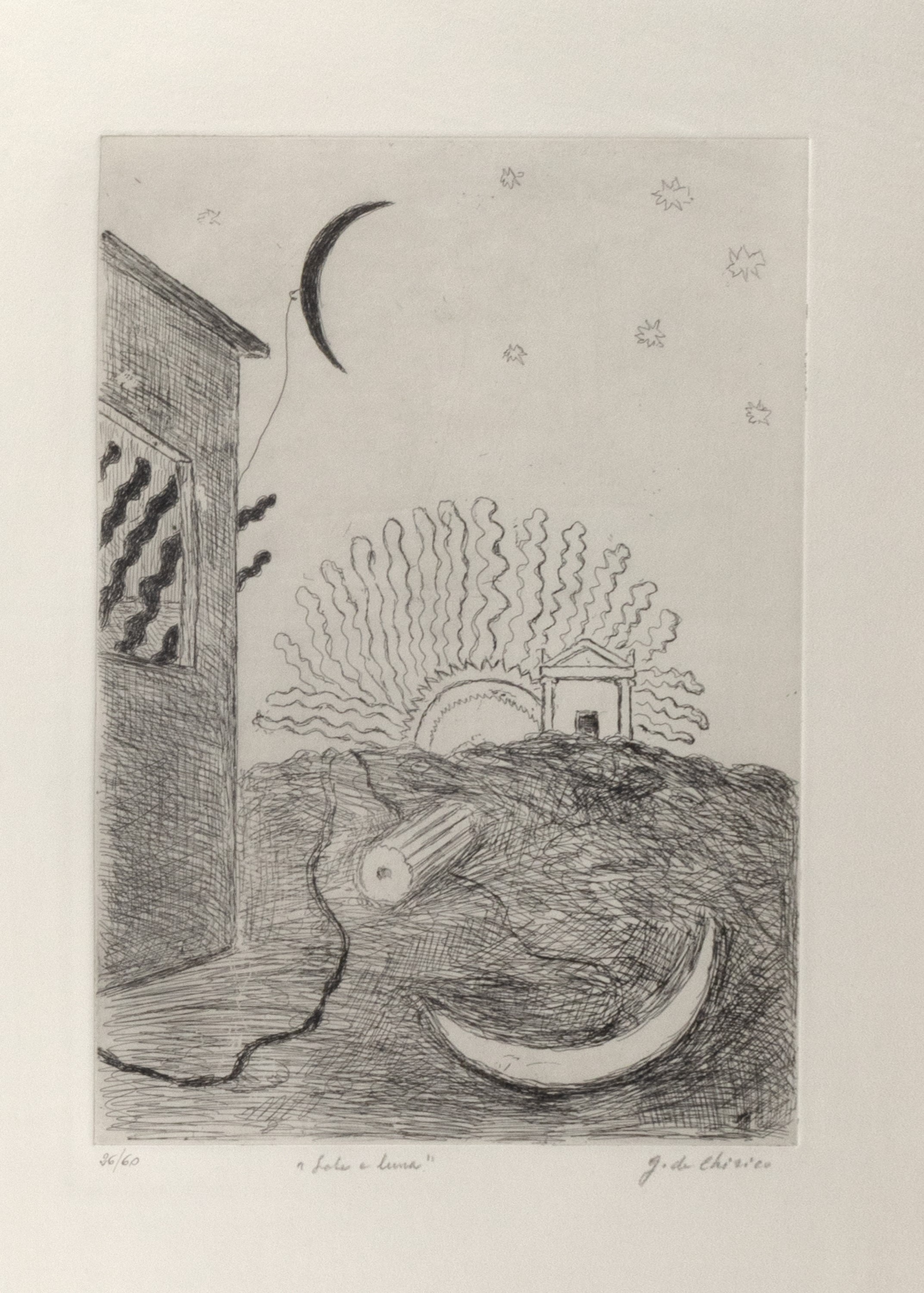 Giorgio de Chirico : Sole e luna  - Asta Grafica internazionale e multipli d'autore - Associazione Nazionale - Case d'Asta italiane