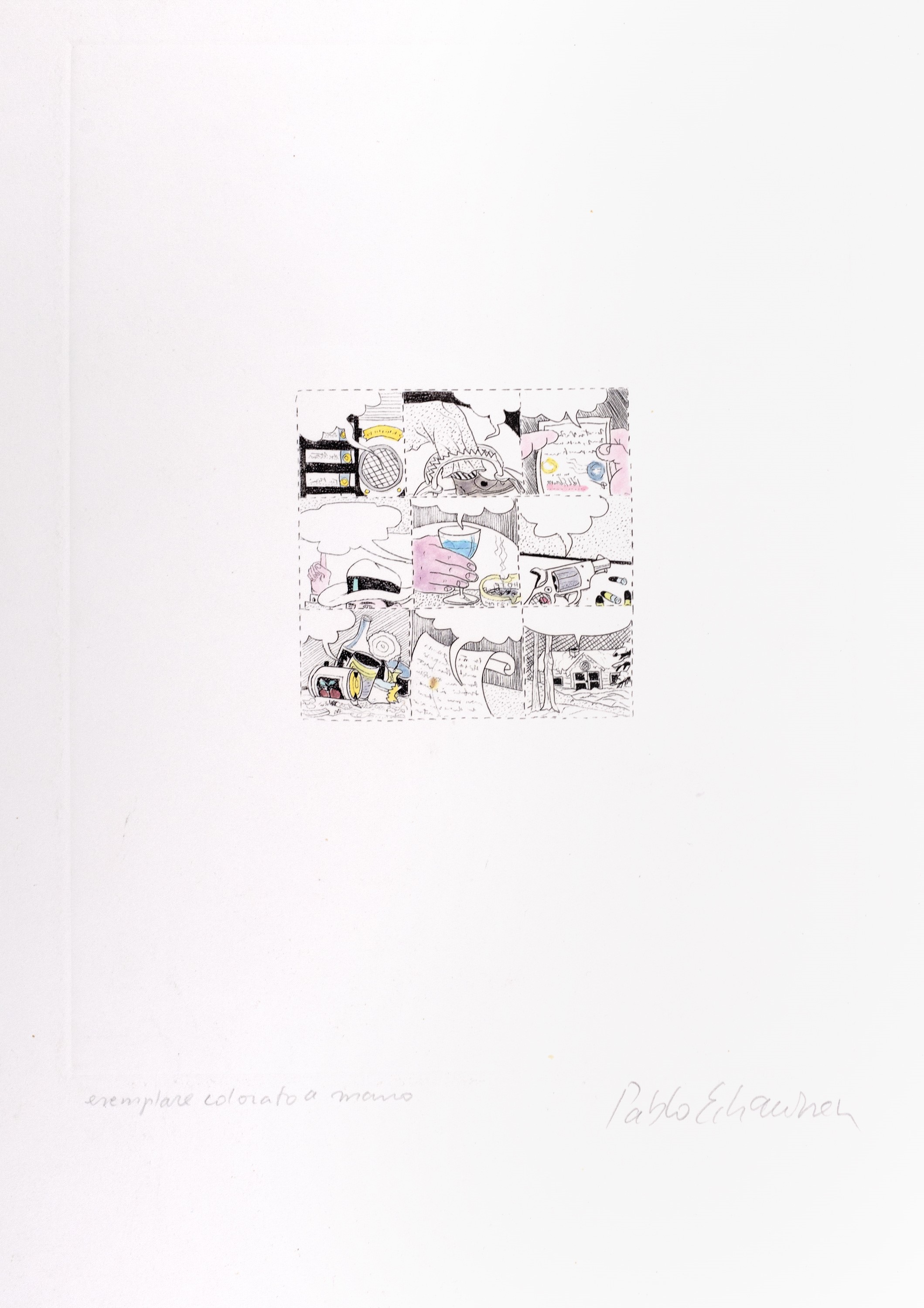 acquaforte colorata a mano, es. unico, cm 28 x 21 (cm 50 x 35 misure del foglio), (sc)