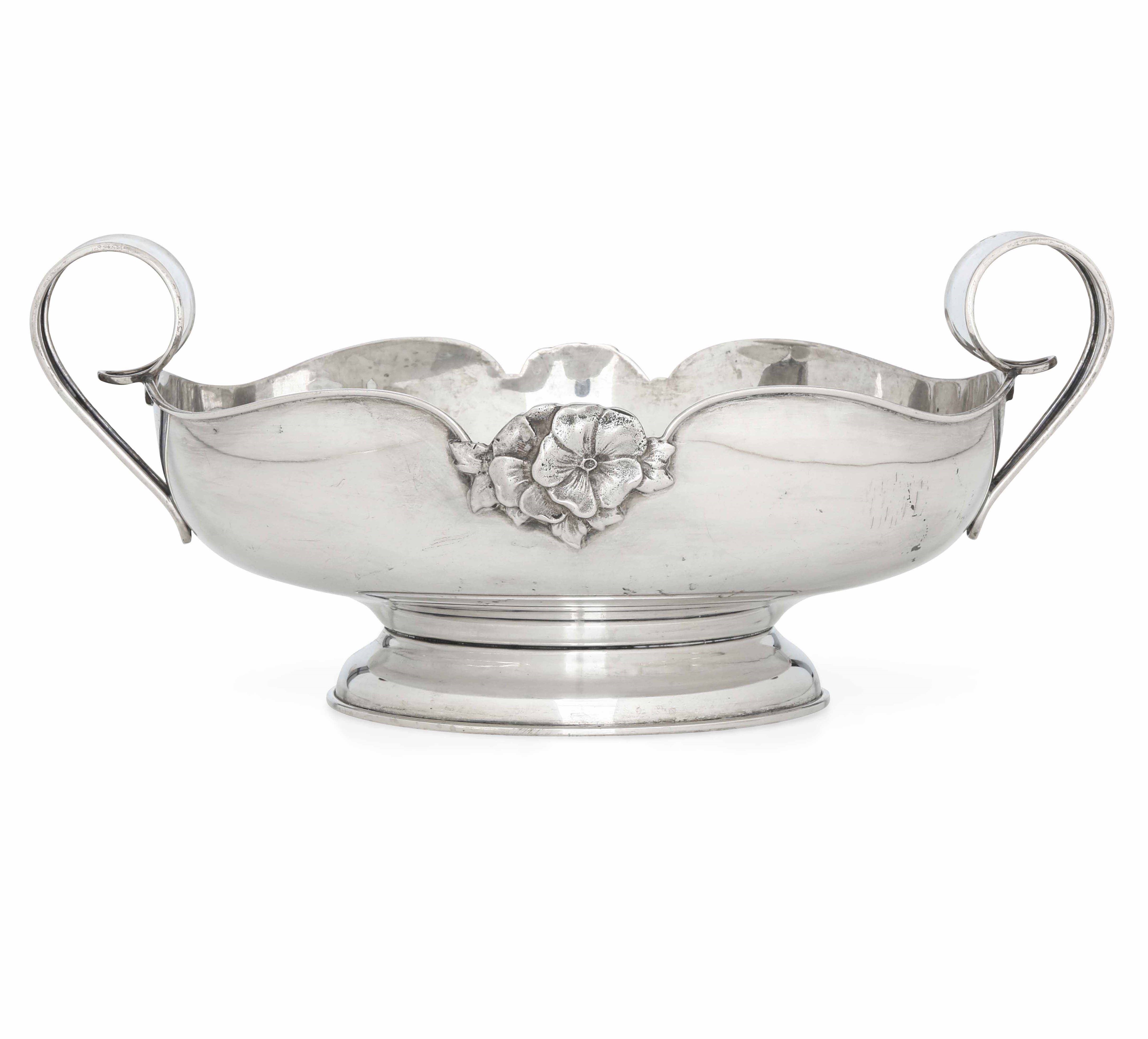 Centrotavola in argento fuso, sbalzato e cesellato. Argenteria italiana del XX secolo. [..]