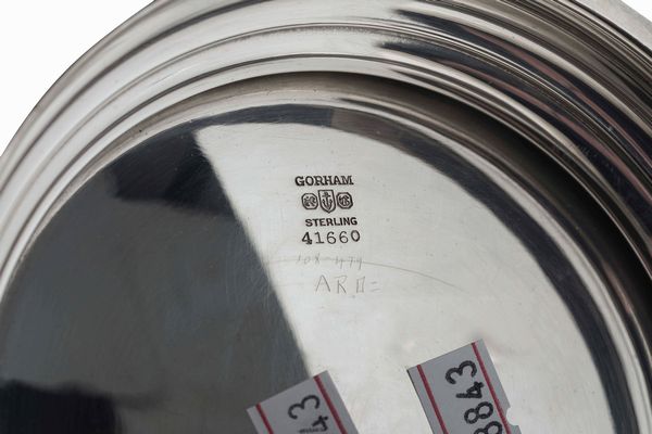 Centrotavola in argento sterling fuso e cesellato. Gorham USA, XX secolo