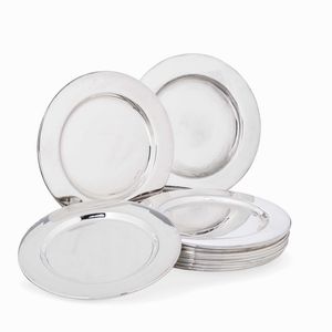 Dodici piatti in argento. Argenteria veneta del XX secolo. Argentiere Rino Greggio, [..]