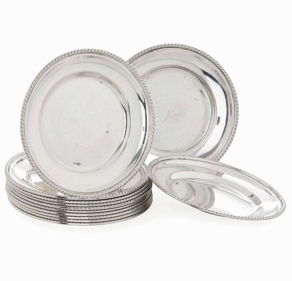 Dodici piattini. Argento fuso e sagomato. Argenteria italiana del XX secolo. Argentiere [..]