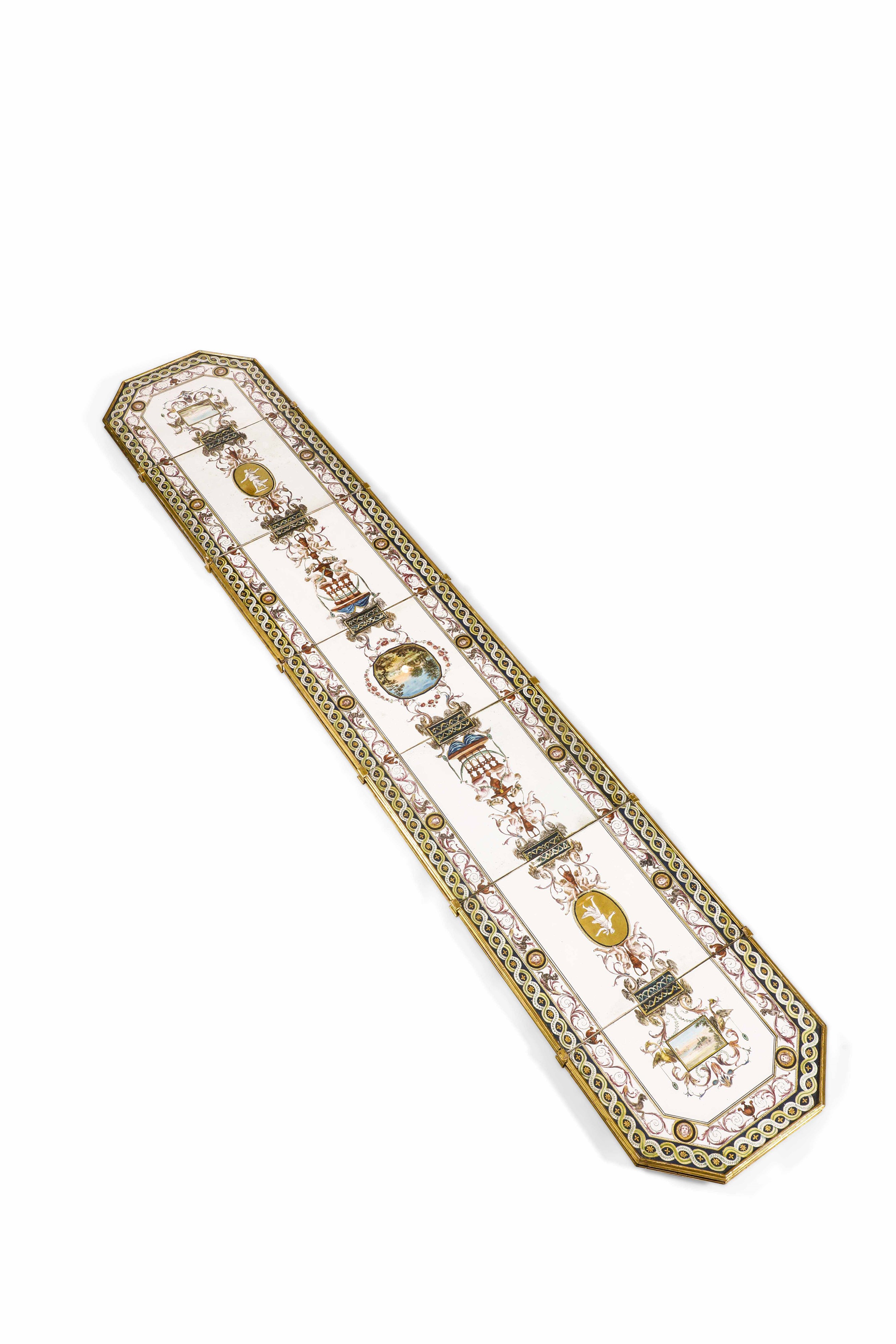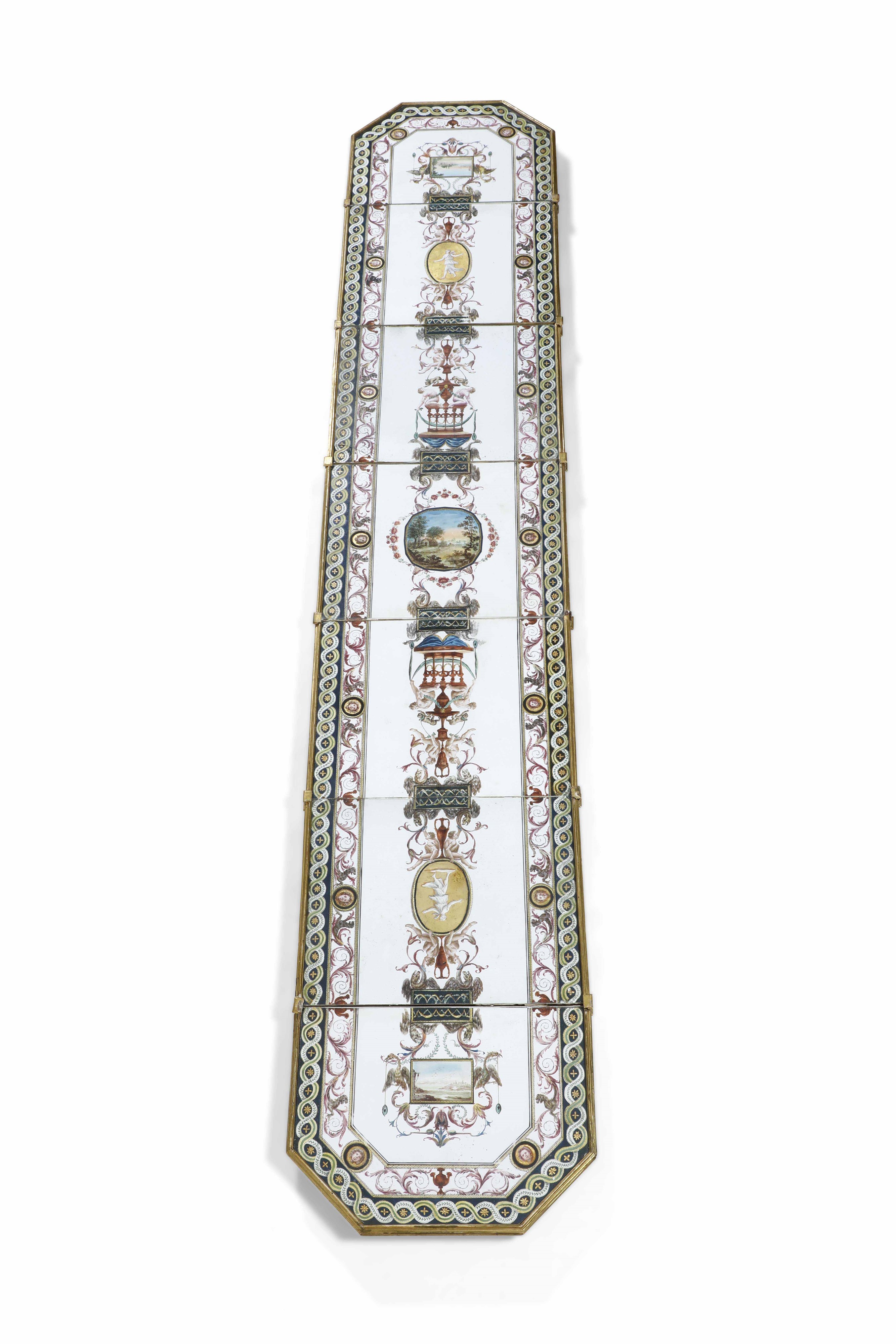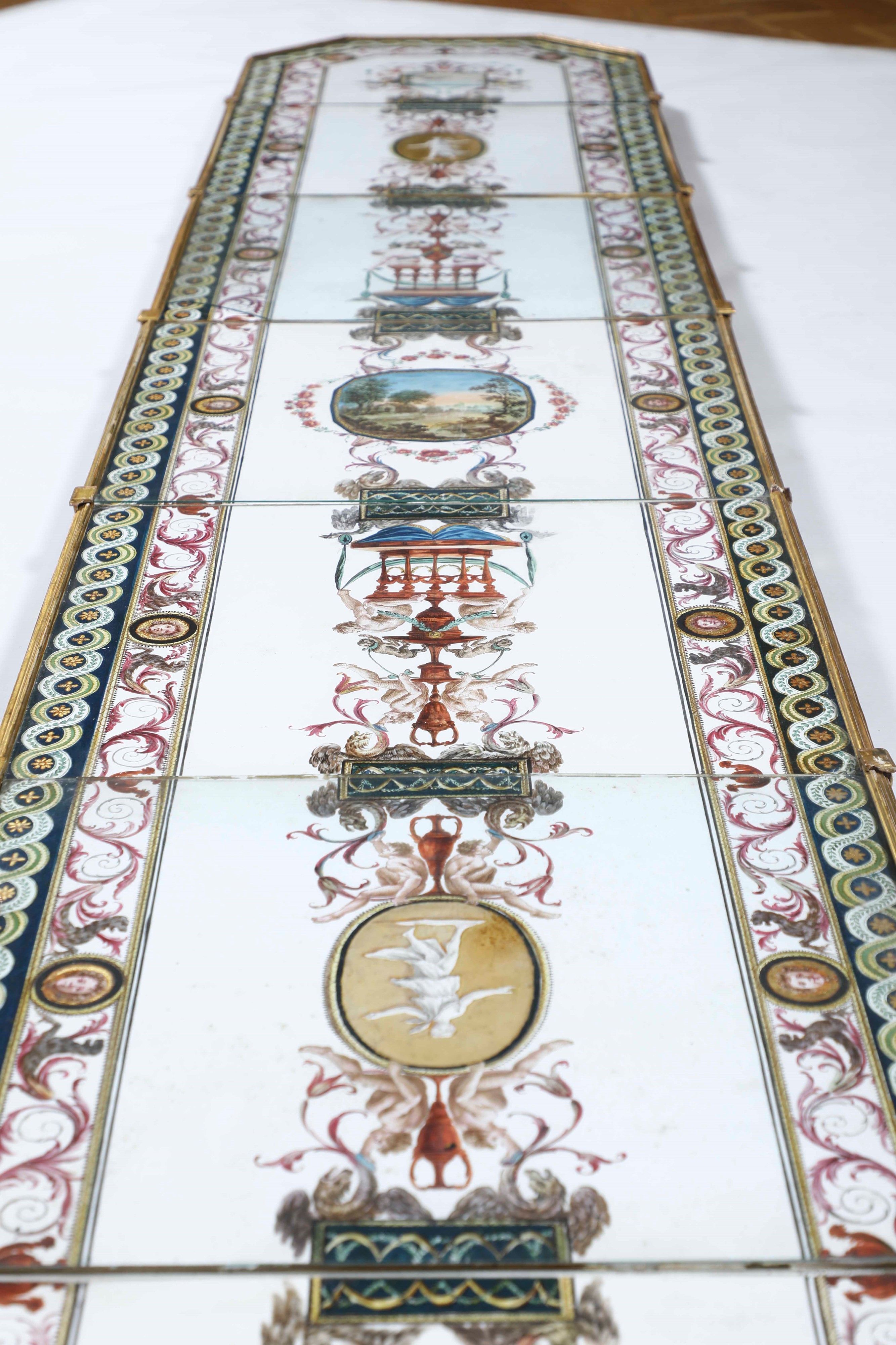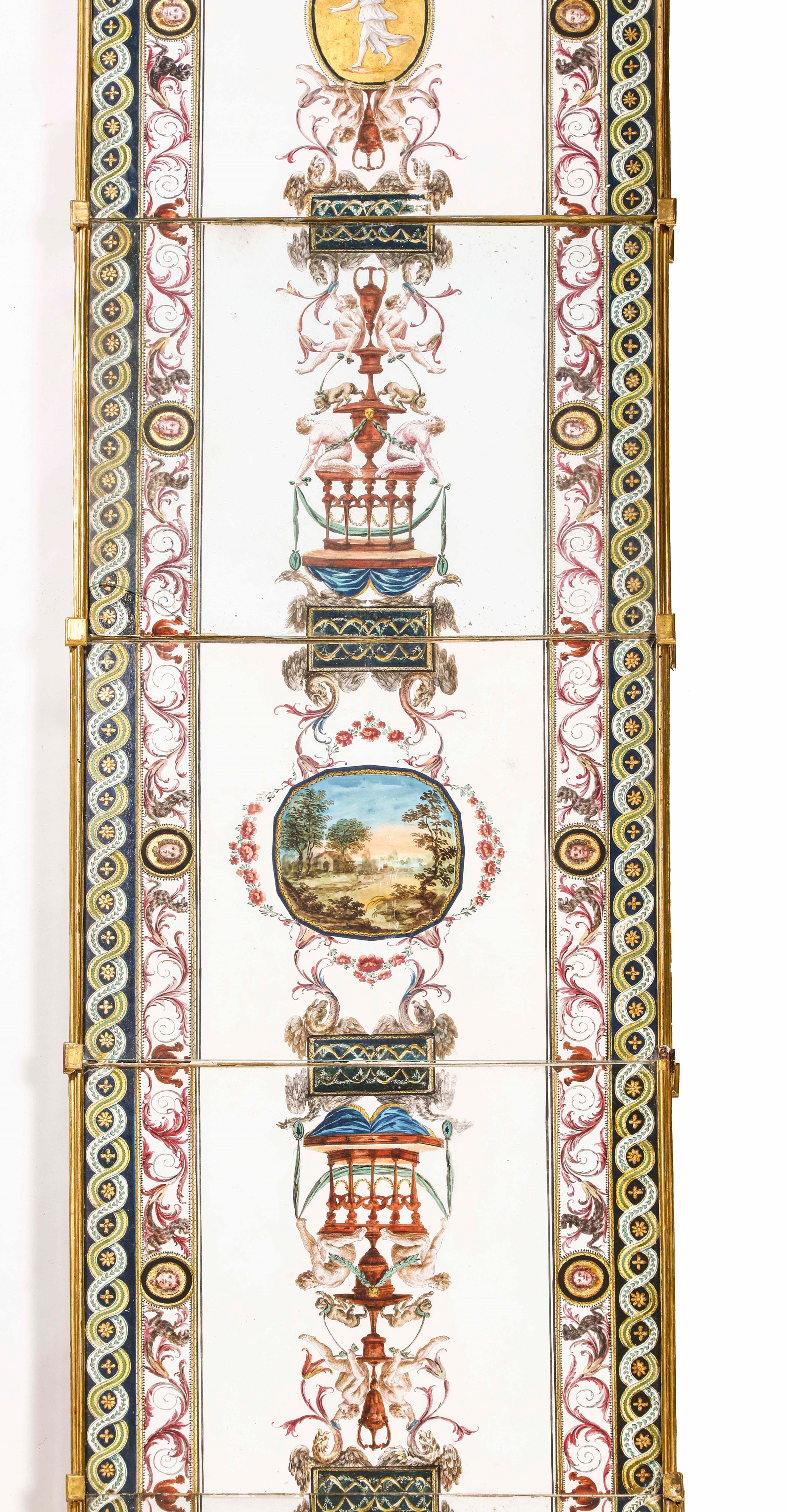 Importante centrotavola neoclassico in legno dorato, carta e vetro dipinti. Italia [..]