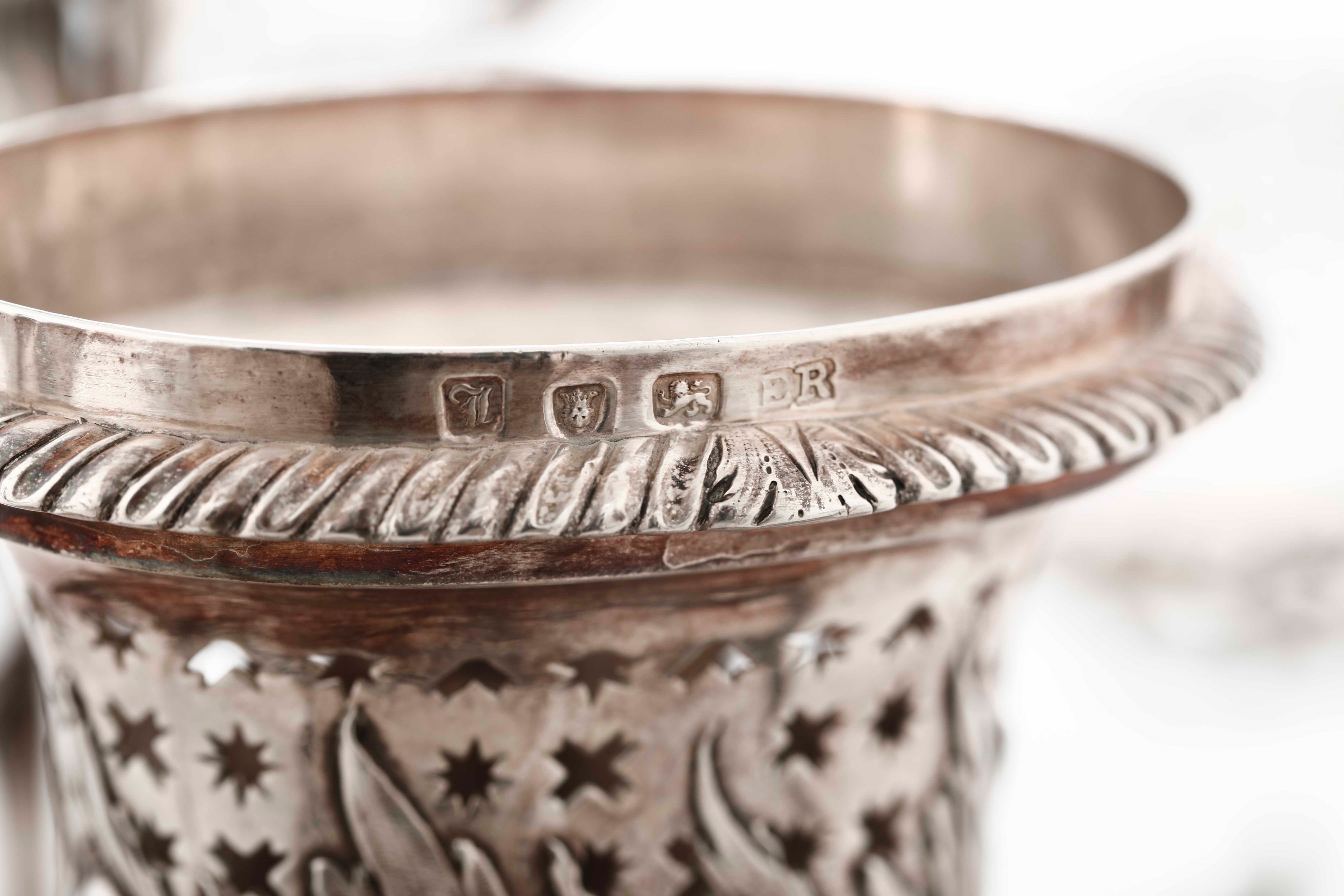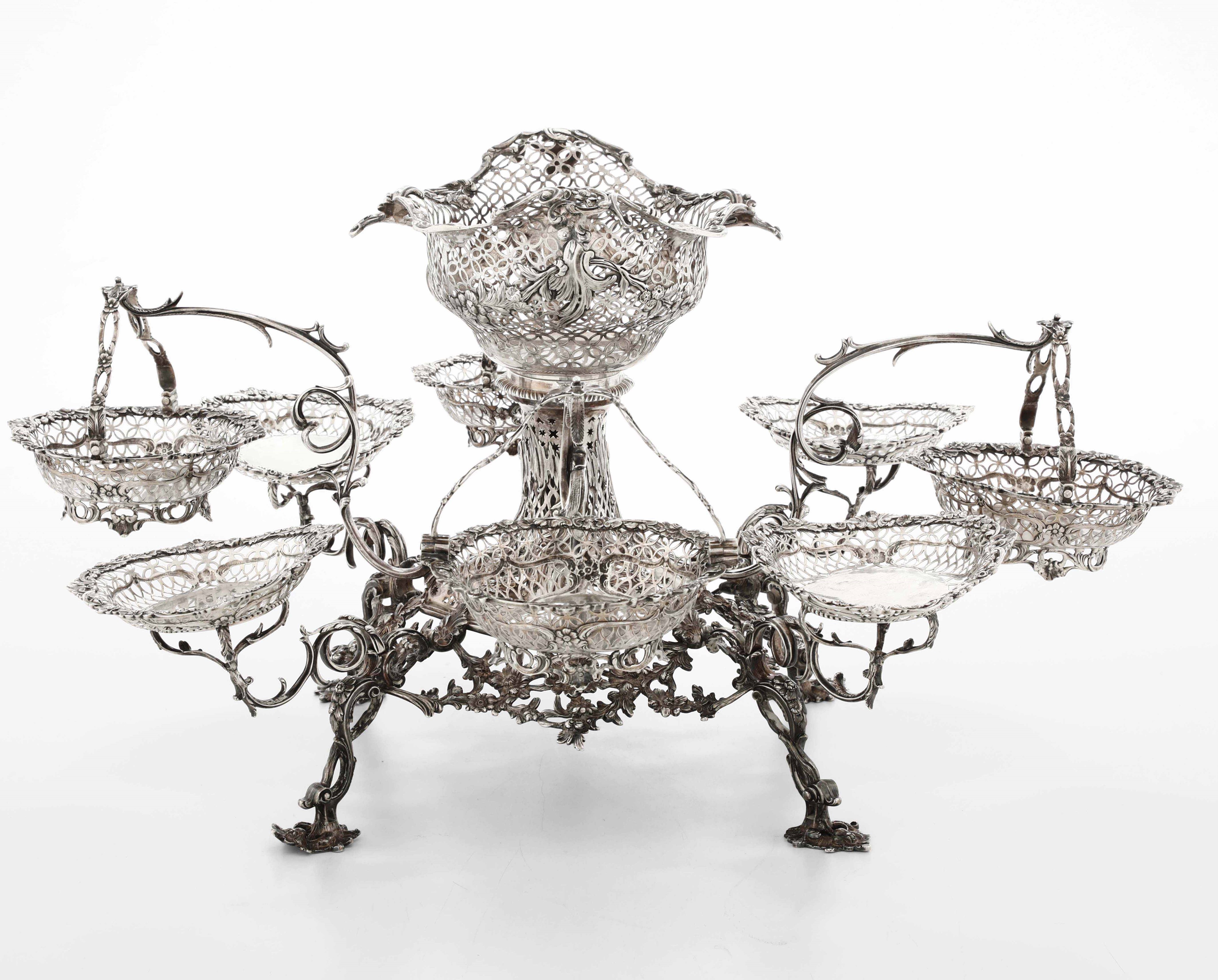Importante epergne in argento sterling fuso, sbalzato, traforato e cesellato. Londra [..]