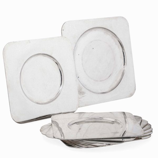 Insieme di nove sottopiatti. Argento fuso e sagomato. Argenteria italiana del XX [..]