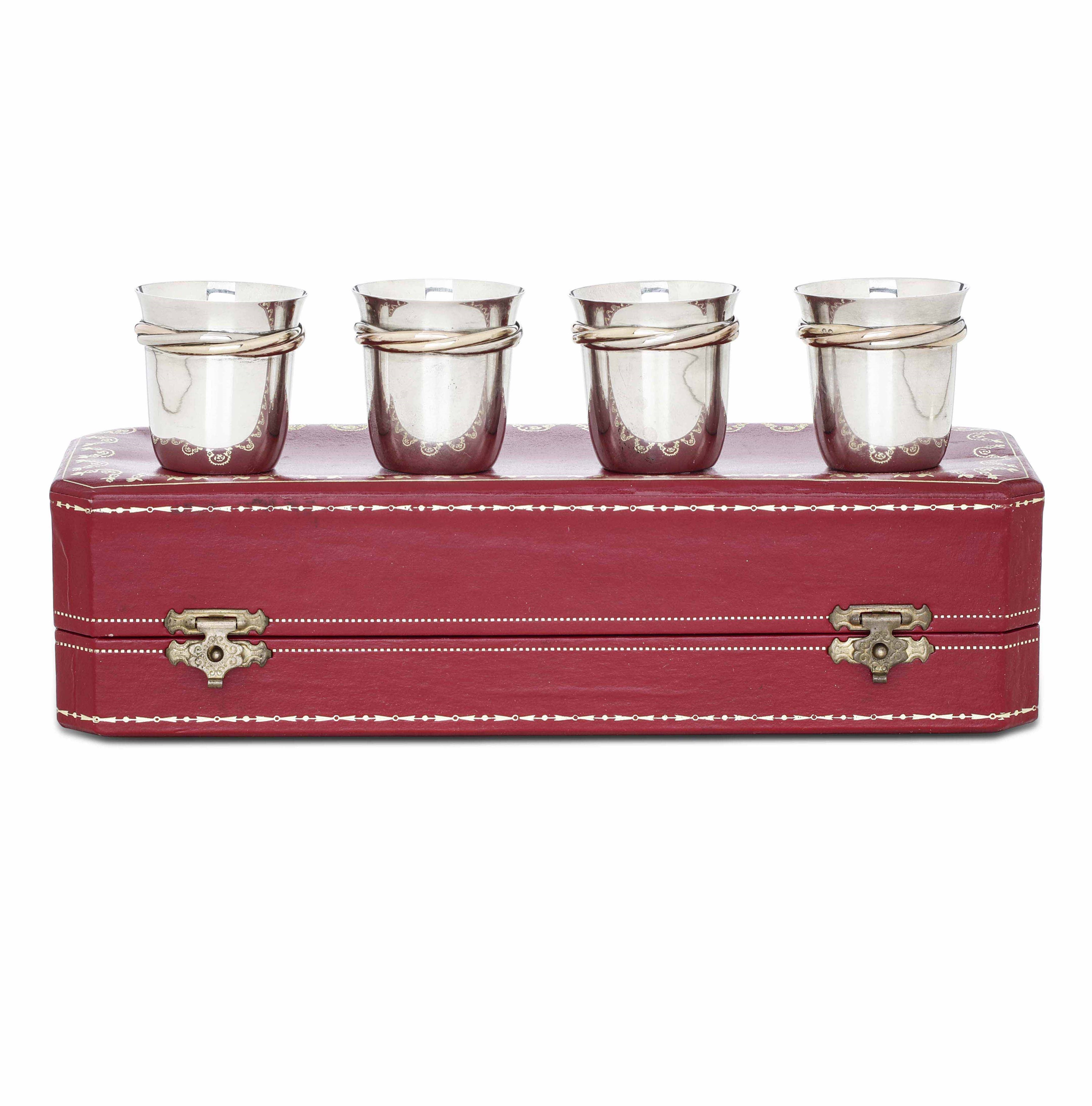 Quattro bicchierini in argento 925. Maison Cartier Paris. Francia seconda metà XX [..]