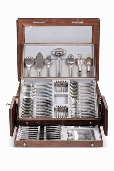 Servizio di posate in argento fuso e cesellato. Argenteria italiana del XX secolo. [..]