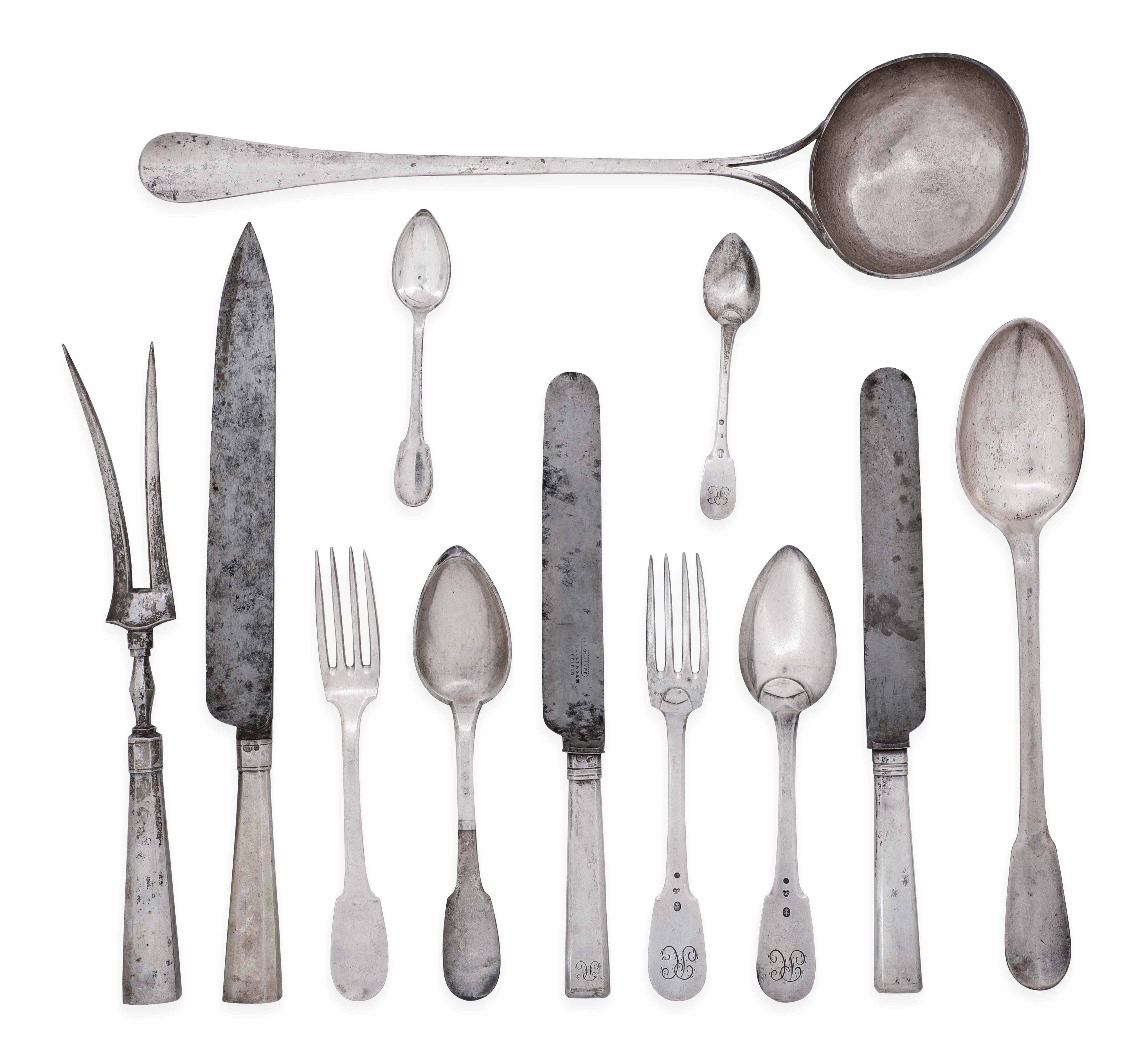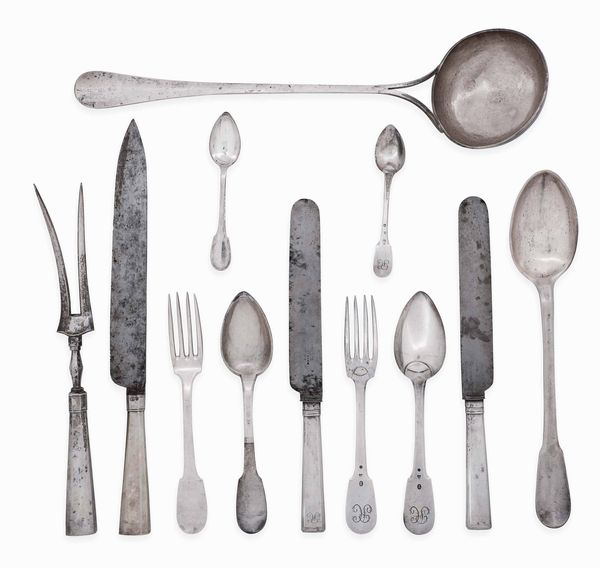 Servizio di posate per diciotto coperti in argento. Genova inizi XIX secolo, marchi [..]