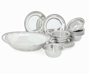 Set da dessert in argento fuso e cesellato. Argenteria veneta del XX secolo. Argentiere [..]