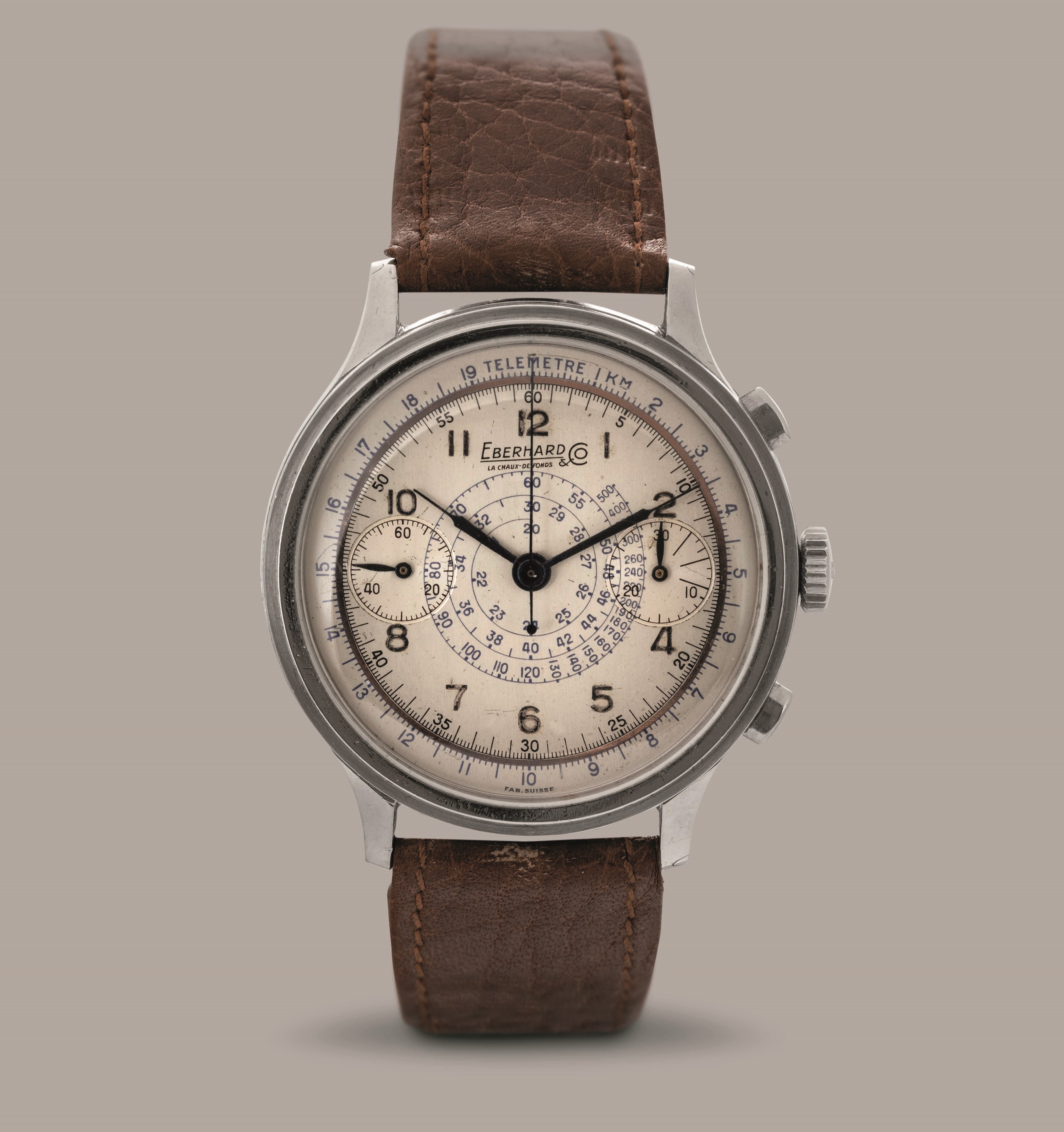 EBERHARD - Extrafort cronografo due contatori in acciaio con cassa a scalino, tasti [..]