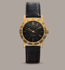 BULGARI - Bulgari in oro giallo 18k, quadrante nero con indici e numeri Arabi applicati, [..]