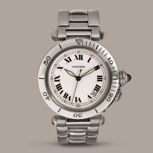 CARTIER - Pasha, in acciaio, automatico, misura grande, quadrante bianco con numeri [..]