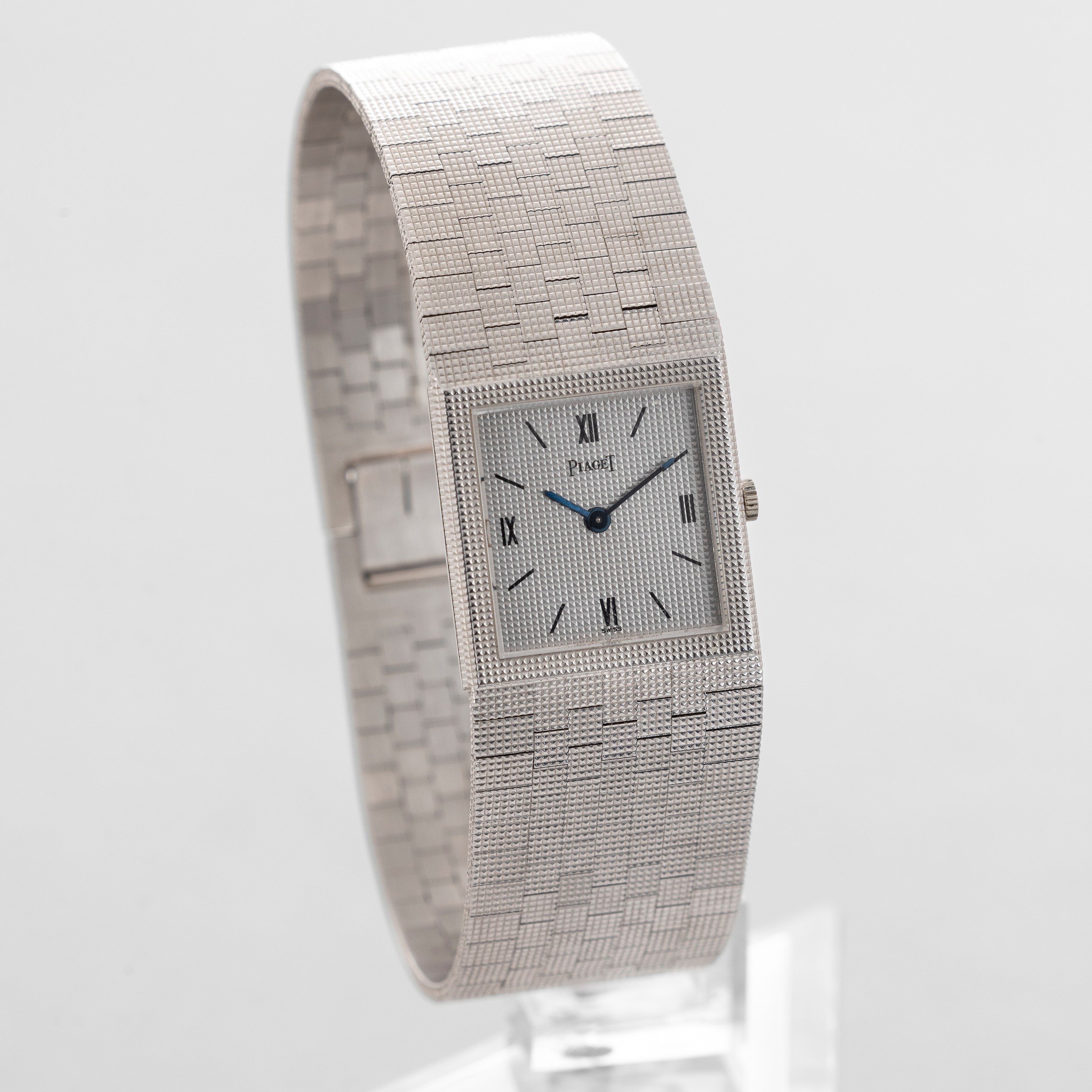 PIAGET - Tank in oro bianco 18k, bracciale integrato, quadrante argento con numeri [..]