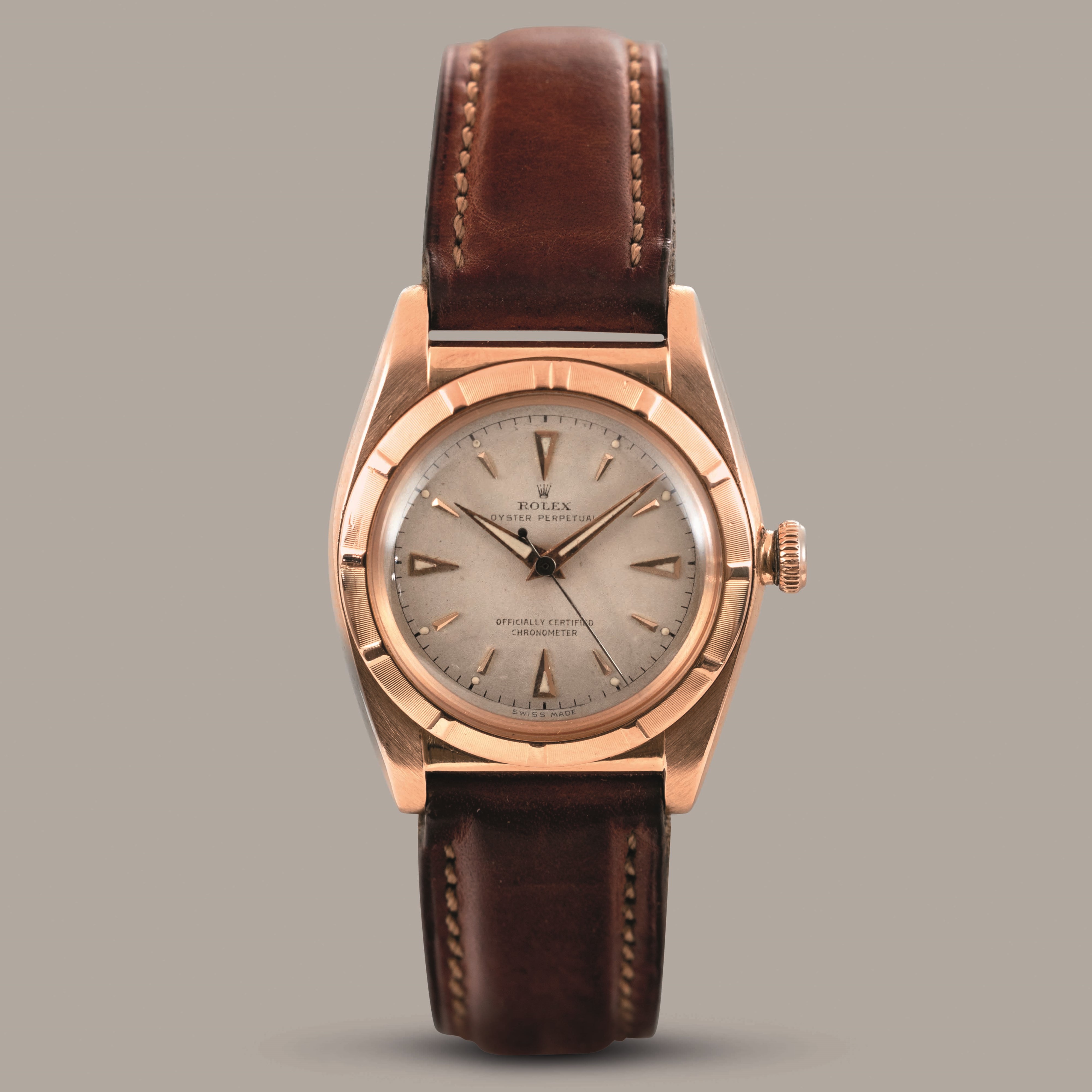 ROLEX - Ovetto ref 4777 in oro rosa 18k con ghiera lavorata, quadrante argento Grenč [..]