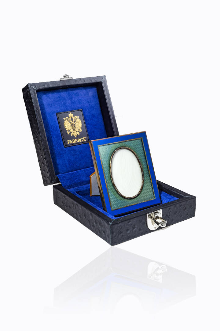 14x11 cm Portafoto in argento 925/1000 decorata con smalti nei toni del blu e del verde.