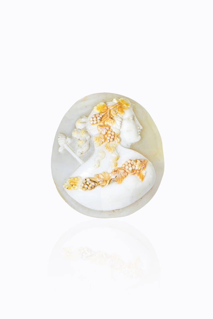 Cm 5x5 5 inciso con figura femminile con tralci d'uva