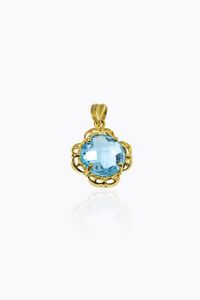 Peso gr 6 5 in oro giallo con grande topazio azzurro sfaccettato.