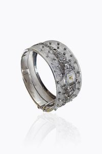 Peso gr 56 Orologio gioiello in oro bianco cassa di forma applicata su bracciale rigido lucido e satinato; impreziosito [..]