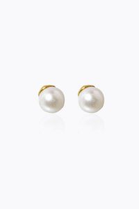 Peso gr 2 4 in oro giallo a lobo con due perle giapponesi del diam. di mm 7 6