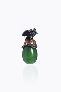 Peso gr10 9 in argento a forma di elmo con aquila a due teste e ovale cabochon in nefrite