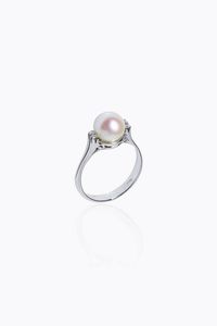 Peso gr 3 7 Misura 15 (55) in oro bianco con perla centrale giapponese del diam. di mm 7 5 ai lati quattro diamanti [..]