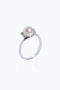 Peso gr 3 3 Misura 12 (52) in oro bianco con perla giapponese del diam. di mm 7 7 e quattro diamantini ai lati [..]